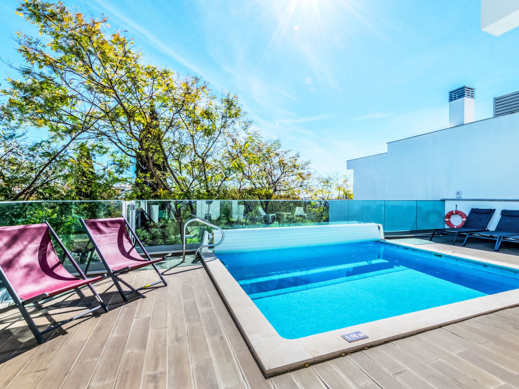 "Sónia", 4 rom hus 245 m2. Romlig og lys, meget komfortabelt og moderne møbler: stue/spisestue med, kabel-TV, internasjonale TVkanaler, flatskjerms TV, air-conditioning og varmluft oppvarming. Utgang til terrassen, til badebassenget. 1 rom med, 1 dobbeltseng (160 cm, lengde 200 cm), air-conditioning og varmluft oppvarming. 1 rom med, 1 dobbeltseng (160 cm, lengde 200 cm), bad/WC, air-conditioning og varmluft oppvarming. Utgang til terrassen, til badebassenget. 1 rom med 2 senger (90 cm lengde 200 cm), air-conditioning og varmluft oppvarming. Utgang til terrassen, til badebassenget. Åpent kjøkken (stekeovn, oppvaskmaskin, 4 keramiske kokeplater, brødrister, vannkoker, mikrobølgeovn, frys, kjøkkenøy). Utgang til terrassen, til badebassenget. Dusj/WC. Terrassemøbler, balkongmøbler grill, liggestoler (4). Panoramautsikt av havet og området. Fasiliteter: vaskemaskin, høy barnestol barneseng for barn opp til 2 år (ekstra). Internett (trådløs LAN [WLAN], gratis). Parkeringsplass ved hbrukt. Velegnet for familier. 111329/AL