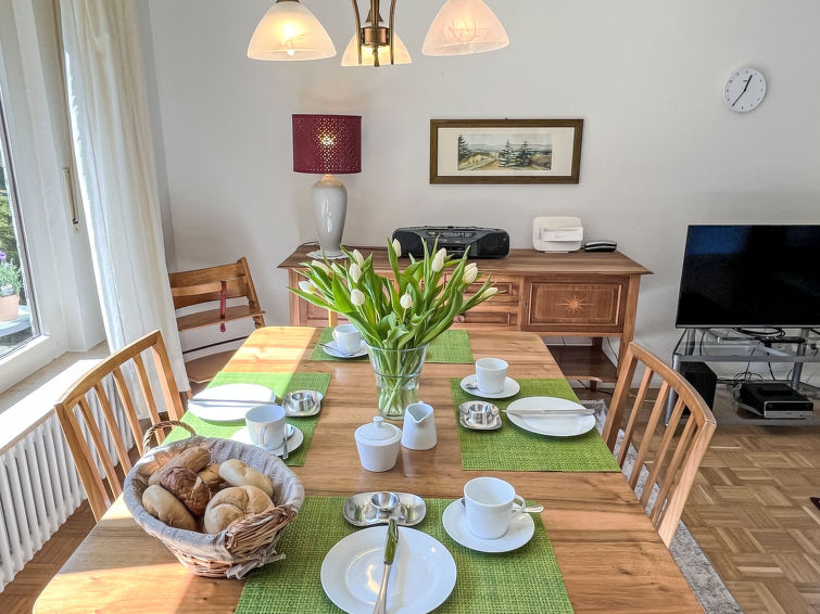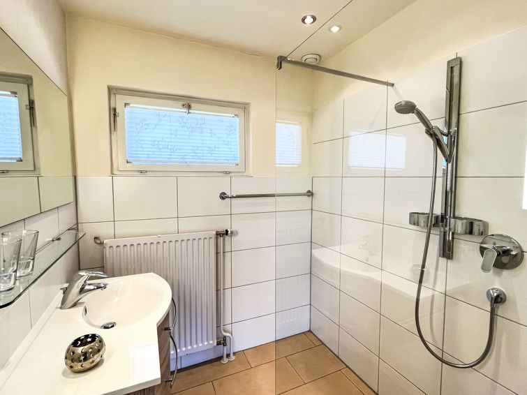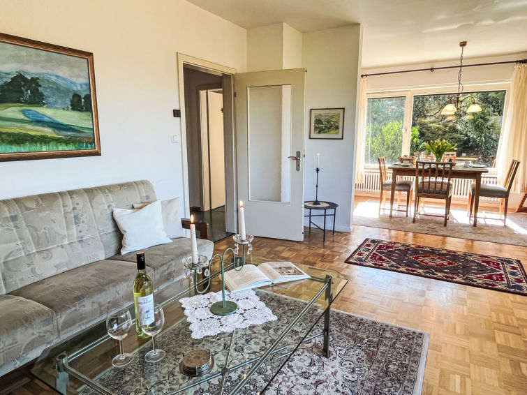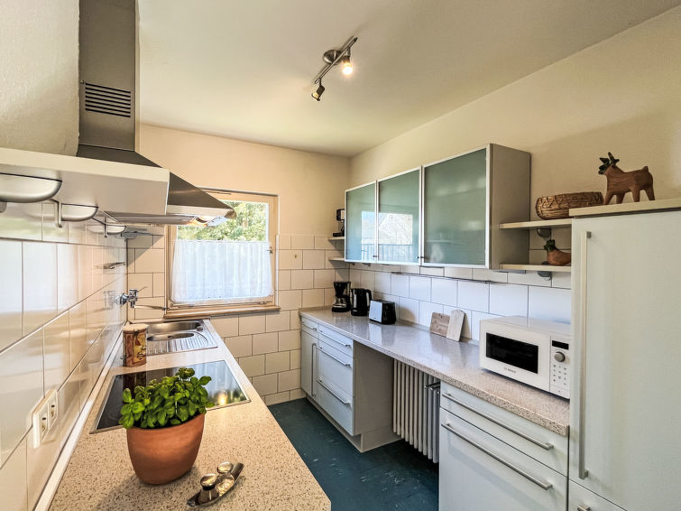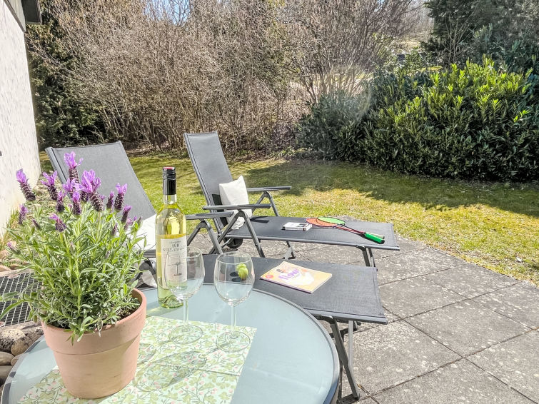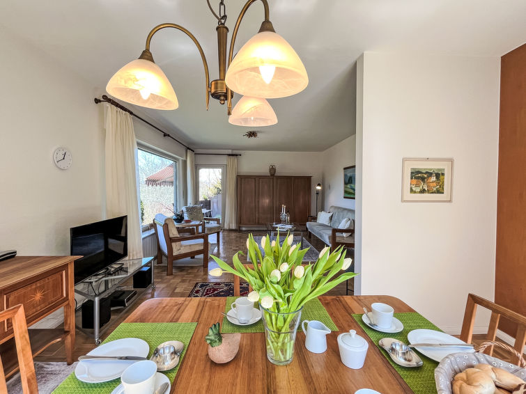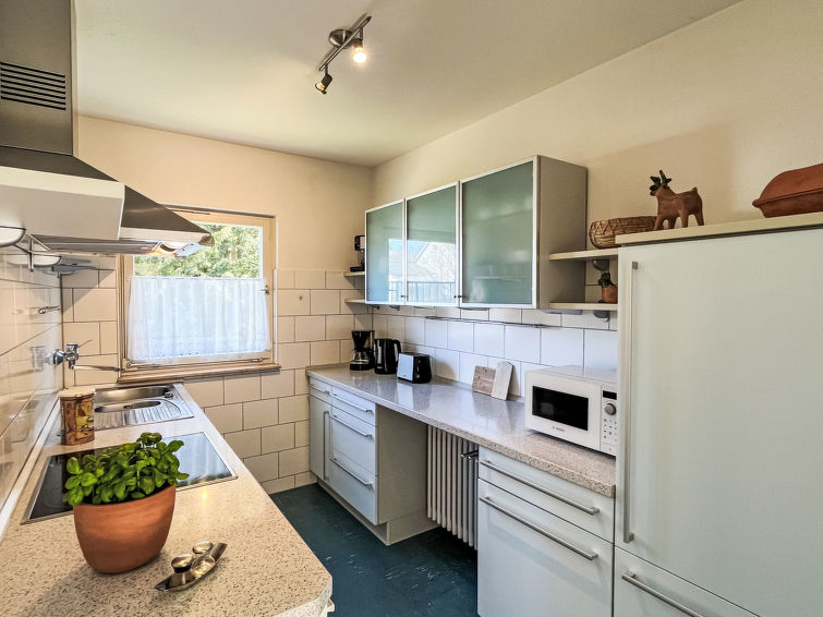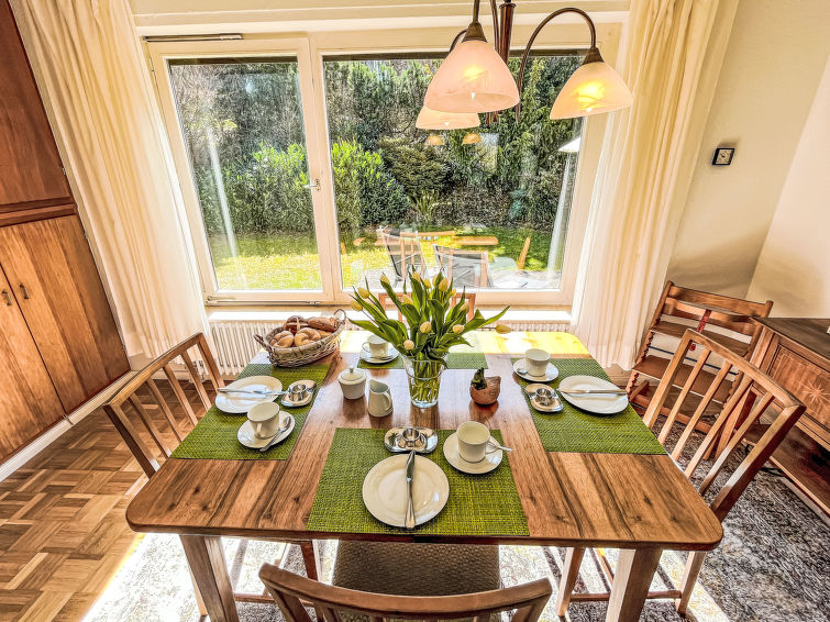 3 rom hus 81 m2. Stilfullt og koseligt møbler: stue/spisestue med, satelit-TV (flatskjerms TV), radio og DVD. Utgang til hagen, til terrassen. 1 rom med, 1 dobbeltseng (2 x 90 cm, lengde 200 cm). 1 rom med 2 senger (90 cm lengde 190 cm). Kjøkken (stekeovn, oppvaskmaskin, 4 keramiske kokeplater, brødrister, vannkoker, mikrobølgeovn, elektrisk kaffemaskin). Dusj, sep. WC. Terrassemøbler, grill. Fasiliteter: vaskemaskin, telefon, høy barnestol barneseng for barn opp til 3 år (ekstra). Internett (DSL/LAN, gratis). Parkeringsplass, garasje. Vennligst merk: røykfri bolig. Bestillinger er kun tillatt for ferieopphold.