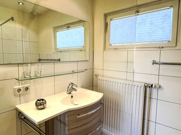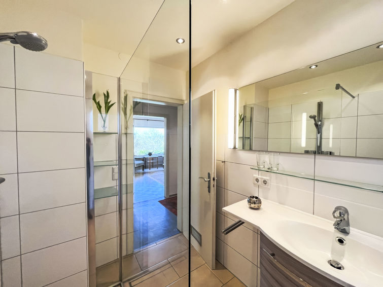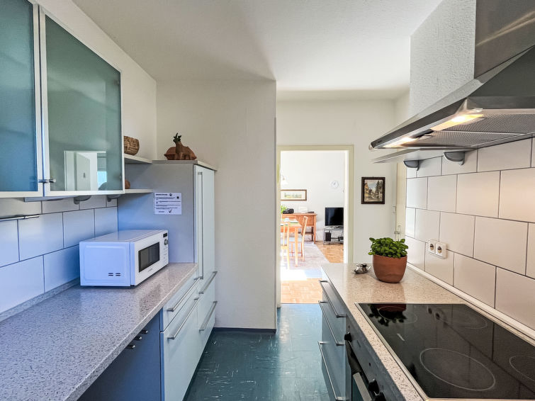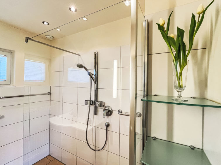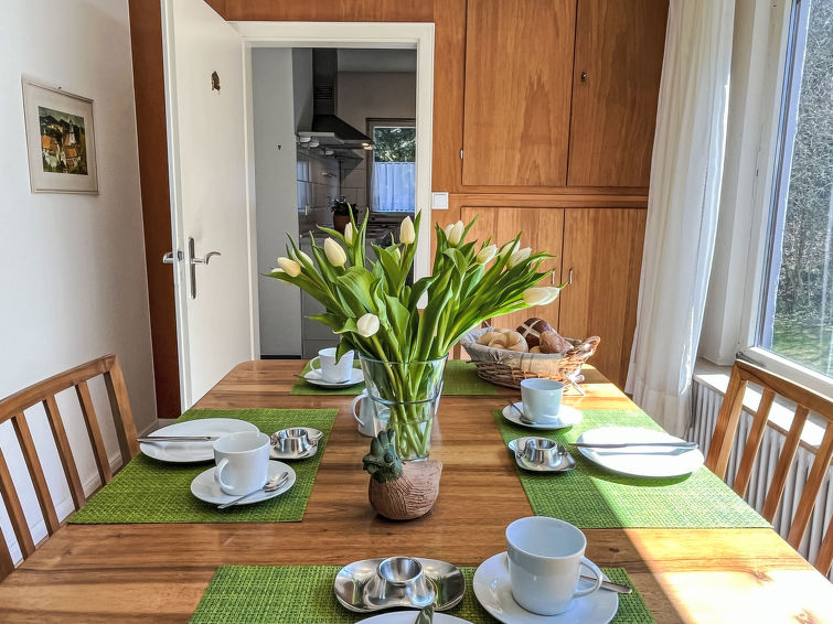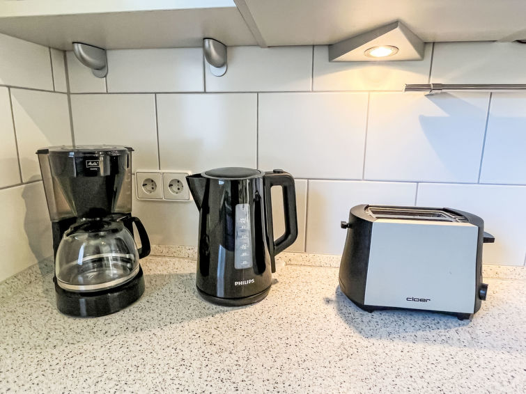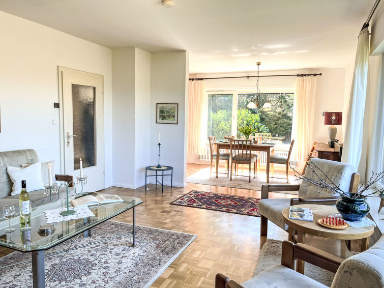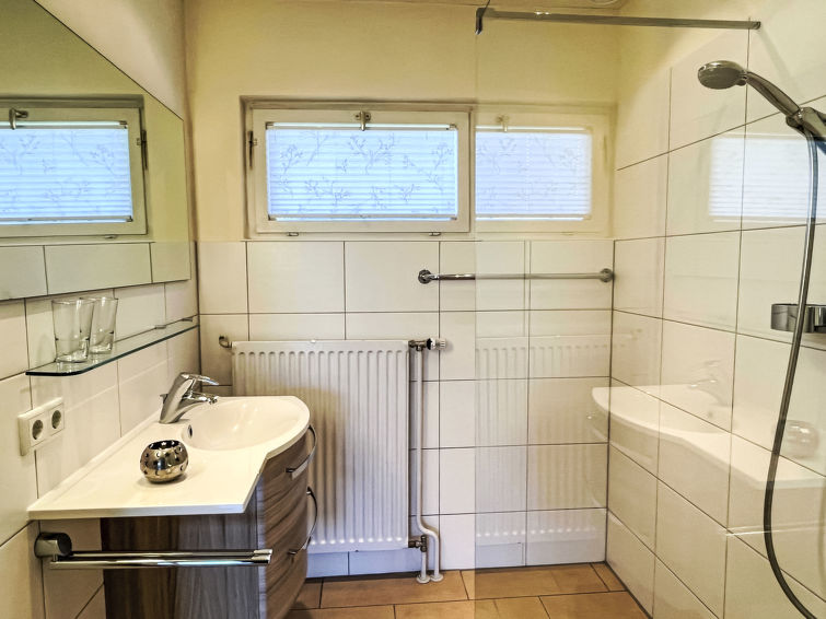3 rom hus 81 m2. Stilfullt og koseligt møbler: stue/spisestue med, satelit-TV (flatskjerms TV), radio og DVD. Utgang til hagen, til terrassen. 1 rom med, 1 dobbeltseng (2 x 90 cm, lengde 200 cm). 1 rom med 2 senger (90 cm lengde 190 cm). Kjøkken (stekeovn, oppvaskmaskin, 4 keramiske kokeplater, brødrister, vannkoker, mikrobølgeovn, elektrisk kaffemaskin). Dusj, sep. WC. Terrassemøbler, grill. Fasiliteter: vaskemaskin, telefon, høy barnestol barneseng for barn opp til 3 år (ekstra). Internett (DSL/LAN, gratis). Parkeringsplass, garasje. Vennligst merk: røykfri bolig. Bestillinger er kun tillatt for ferieopphold.