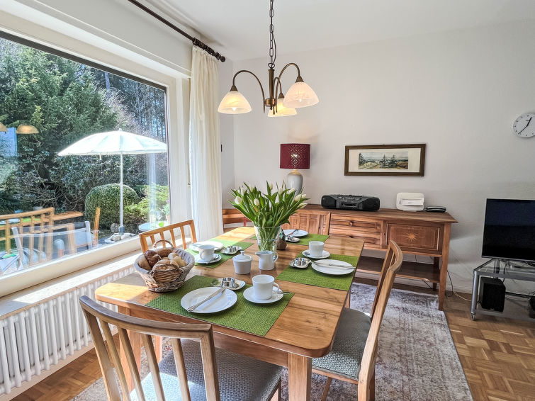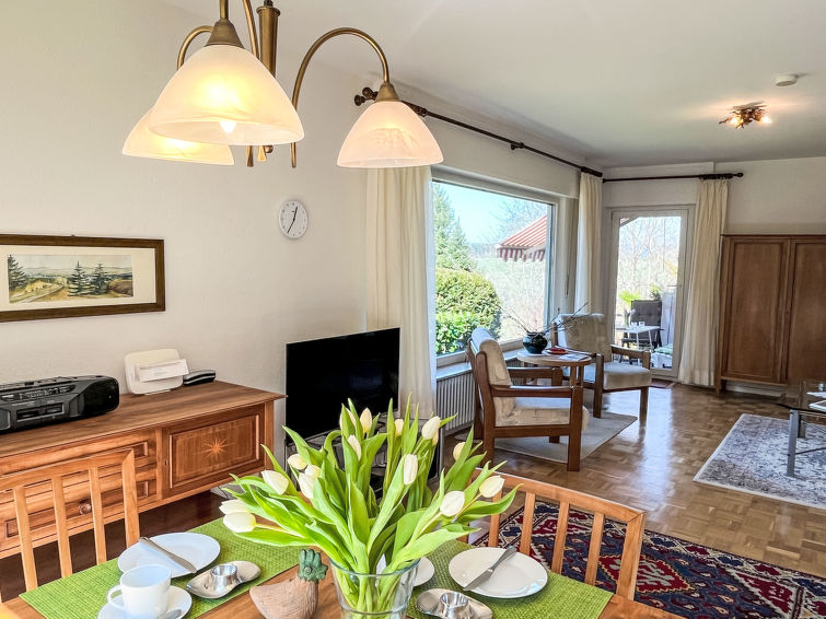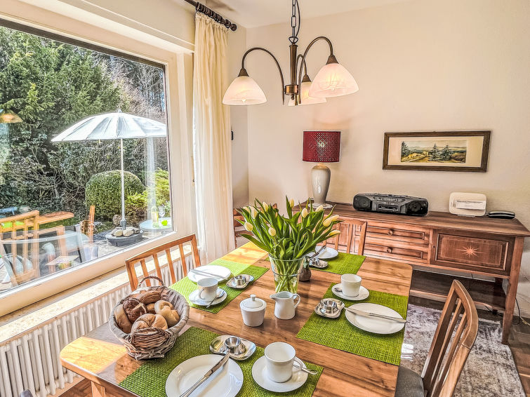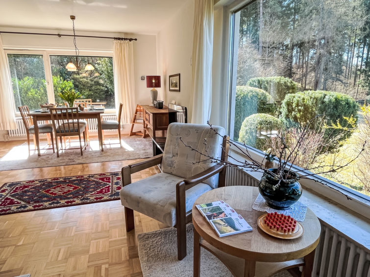 Koselig enmannsbolig "Sonnenbühl". I utkanten, 300 m fra sentrum, i en roligt posisjon ved en høyde, direkte ved skogskanten. Privat: hage med, plen med solningsområde. I huset: bordtennis, sentralvarme. Supermarked 3 km, restaurant 300 m, bakeri 4 km, bussholdeplass 300 m, togstasjon "Löffingen" 5 km, utendørs svømmebasseng 500 m, innendørs pool 300 m. Golfbane(18 hull) 20 km, langrensløype 300 m. Attraksjoner i nærheten: Freiburg 45 km. Velkjente skiområder: Feldberg 35 km. Velkjente innsjøer: Titisee 23 km, Schluchsee 39 km.