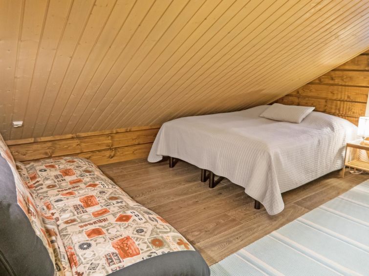 The surface area of 135 m² on two floors and numerous sleeping places guarantee that a group of people can comfortably stay overnight, there is also room to retreat to your own peace. Downstairs there are two bedrooms, one with a double bed, the other with a bunk bed. Upstairs there are two bedrooms, both with double beds (2x80cm), and in the second there is an additional 140 cm sofa bed. In the lobby space on the upper floor, it is possible to calm down two sleeping areas with curtains, one of which has a 140cm divan bed and the other a double bed (2x80cm). There is a separate toilet both upstairs and downstairs.