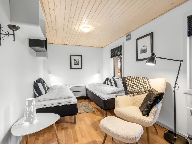 Enmannsbolig, bygget i 1970. 2 km fra sjøen. Privat: uberørt tomt 2'014 m2. Terrasse (25 m2), lekeplass (huske). I huset: badstu, vaskemaskin, tørketrommel. Parkering ved hbrukt. Daglivarehandel 300 m. Eieren godtar ikke noen ungdomsgrupper.