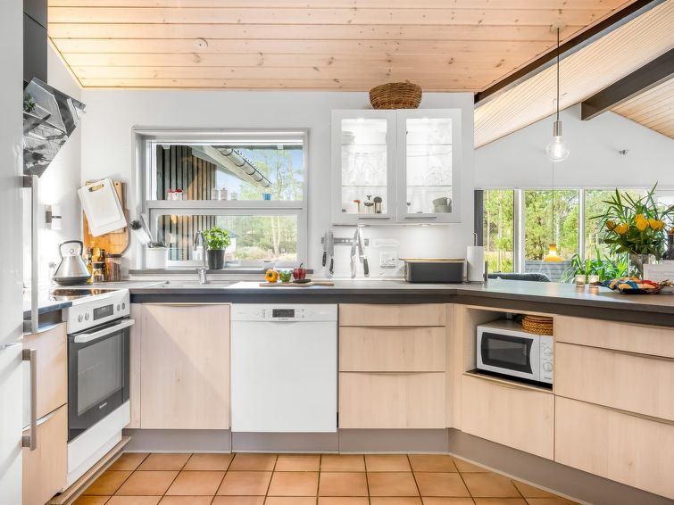 "Sora" - 2km from the sea in Western Jutland", 4 rom hus 130 m2. Passer for 8 voksne. Stue med, TV og DVD. 1 rom med, 1 dobbeltseng. 1 rom med, 1 dobbeltseng. 1 rom med 2 senger. 1 rom med 2 senger. Kjøkken (stekeovn, oppvaskmaskin, 4 keramiske kokeplater, mikrobølgeovn, frys). 2 dusjer/WC. Fasiliteter: høy barnestol. Internett (trådløs LAN [WLAN]). Vennligst merk: røykfri bolig. Max kjæledyr / hund tillatt 1 kjæledyr / hund tillatt.