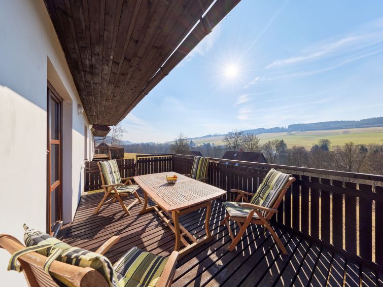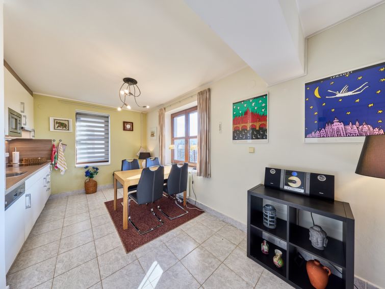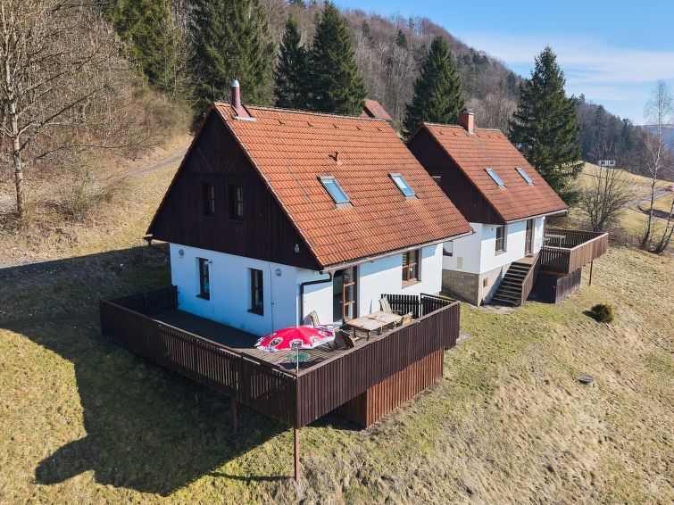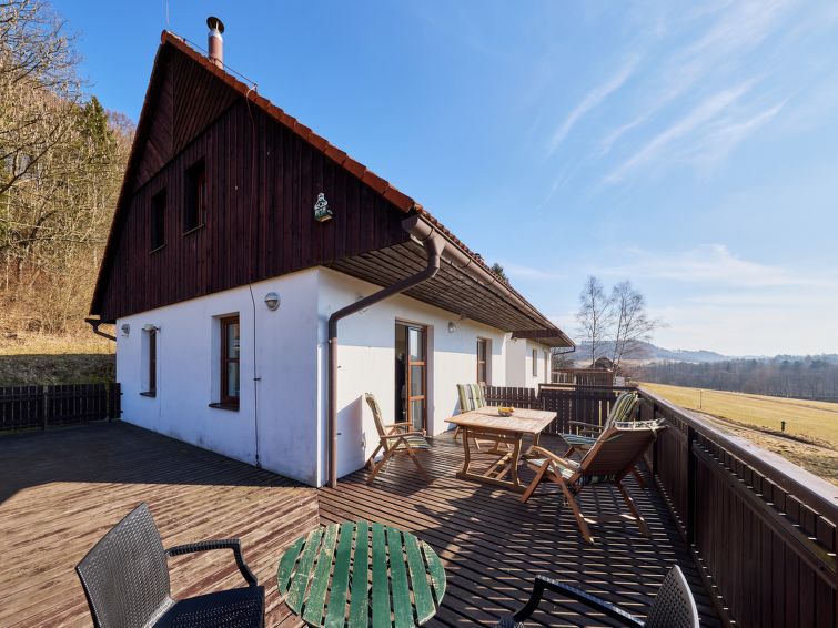 "Stárkov 6", 4 rom hus 100 m2 på 2 etasjer. Lys, fullstendig renovert i 2015, koseligt møbler: stue med, vedovn, satelit-TV og flatskjerms TV. Utgang til terrassen. Åpent kjøkken (oppvaskmaskin, 4 induksjonskomfyr, brødrister, vannkoker, mikrobølgeovn, frys, elektrisk kaffemaskin) med spisebord. Dusj/WC. El-oppvarming. øverste etasje: 1 rom med 2 senger. 1 rom med 2 senger. 1 rom med, 1 dobbeltseng og satelit-TV. Stor terrasse. Terrassemøbler. Meget vakker panoramautsikt av dalen og landskapet. Fasiliteter: vaskemaskin, strykejern, høy barnestol barneseng. Internett (trådløs LAN [WLAN], gratis). Parkeringsplass (2 Biler) ved hbrukt. Vennligst merk: velegnet for familier. Røykfritt hus.