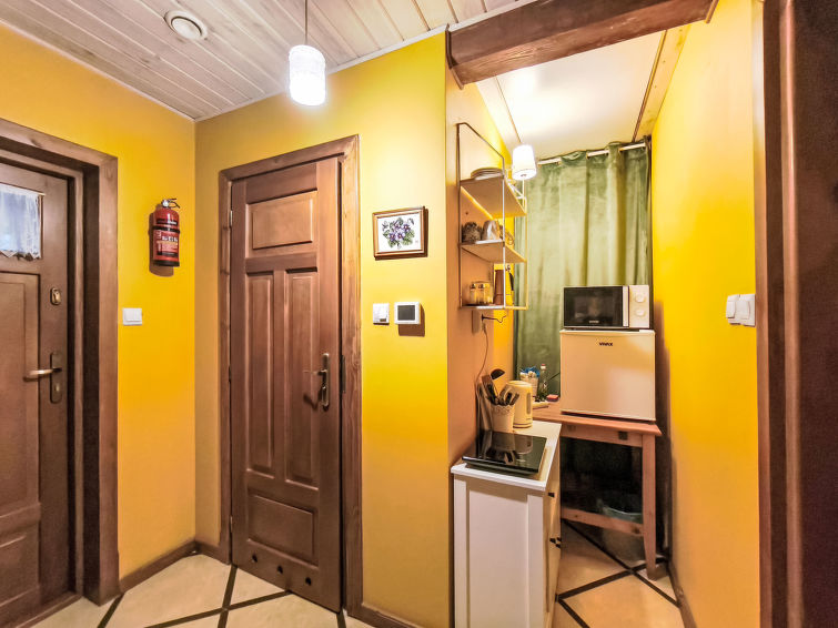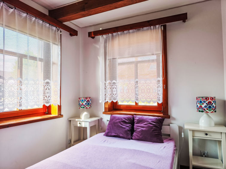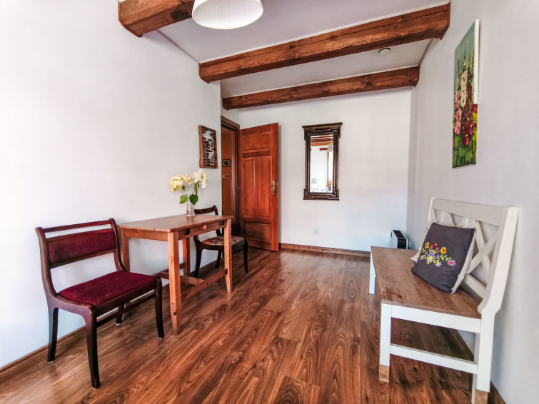 Enmannsbolig "Stoczek", bygget i 1914, renovert i 2012. I en roligt, høyt posisjon, utmerkt område: midt i sentrum, men roligt, ligger ved en mindre vei, i det grønne. Privat: tomt 1'400 m2 (inngjerdet), hage m2 200 ha blomster, eng 800 m2. Terrasse (10 m2), hagemøbler, grill, parkering ved hbrukt på tomten. Butikk 500 m, daglivarehandel 20 m, supermarked 2 km, restaurant 500 m, bussholdeplass 1 km. Rideskole, turstier fra hbrukt, sykkelvei 500 m, lekeplass 1.5 km. Vennligst merk: velegnet for barnefamilier. Eieren godtar ikke noen ungdomsgrupper.