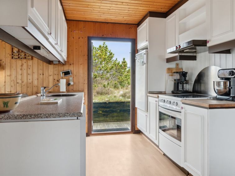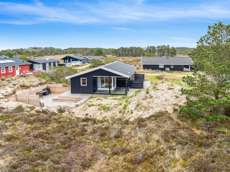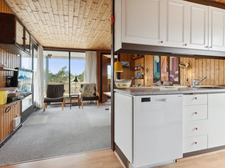 "Sulo" - 1.4km from the sea in NW Jutland", 3 rom hus 68 m2. Passer for 3 voksne + 3 barn. Stue med, TV. 1 rom med 2 senger. 1 rom med, 1 x 2 køysenger. 1 rom med, 1 x 2 køysenger. Kjøkken (stekeovn, oppvaskmaskin, 4 keramiske kokeplater, mikrobølgeovn, frys). Dusj/WC. Terrasse 15 m2, dekt. Fasiliteter: Internett (trådløs LAN [WLAN]). Vennligst merk: røykfri bolig.