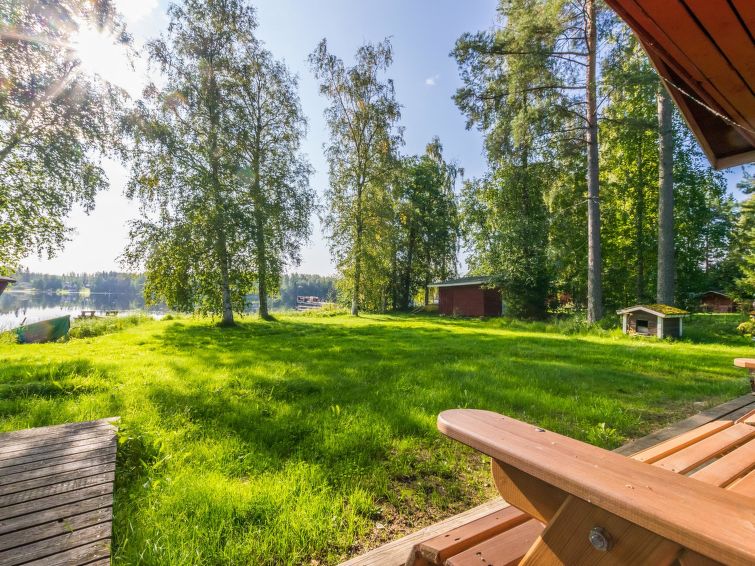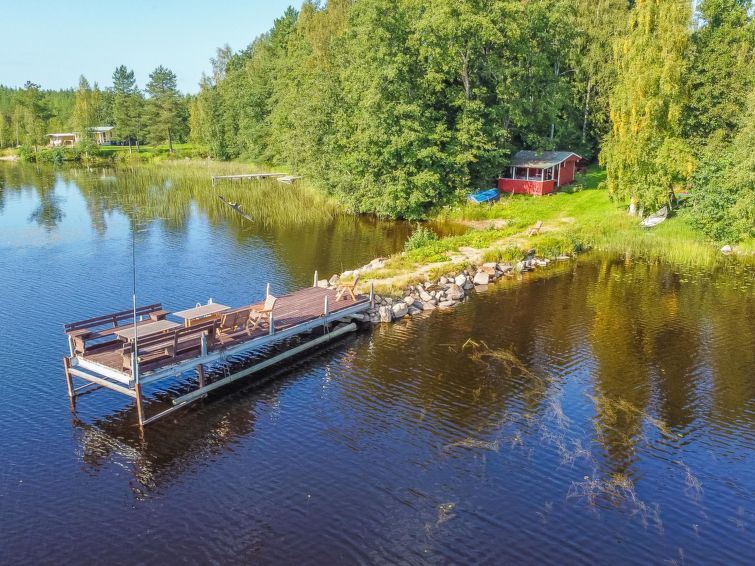Shared swimming beach (shallow hard sanded bottom) and pier, outdoor barbecue grill and a grassy field for kids. Area has good berry and mushroom picking terrain; small game hunting opportunities. Lake with good fish stocks.