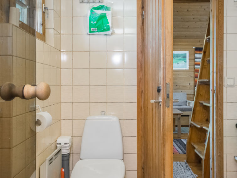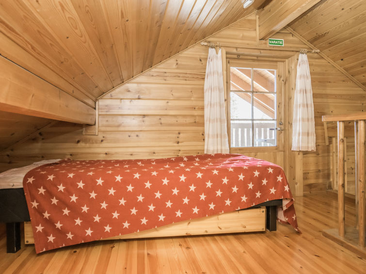 The area of the cottage is about 39 m² and it also has a loft with an area of 12 m². The cottage includes a kitchen with a spreadable laver for 1-2 guests, a bedroom with a double bed, and a loft with two single beds. Sauna (electric heater), shower and toilet are also available. The cottage also has a terrace where you can enjoy the outdoors and garden furniture where you can relax and enjoy the beautiful scenery.