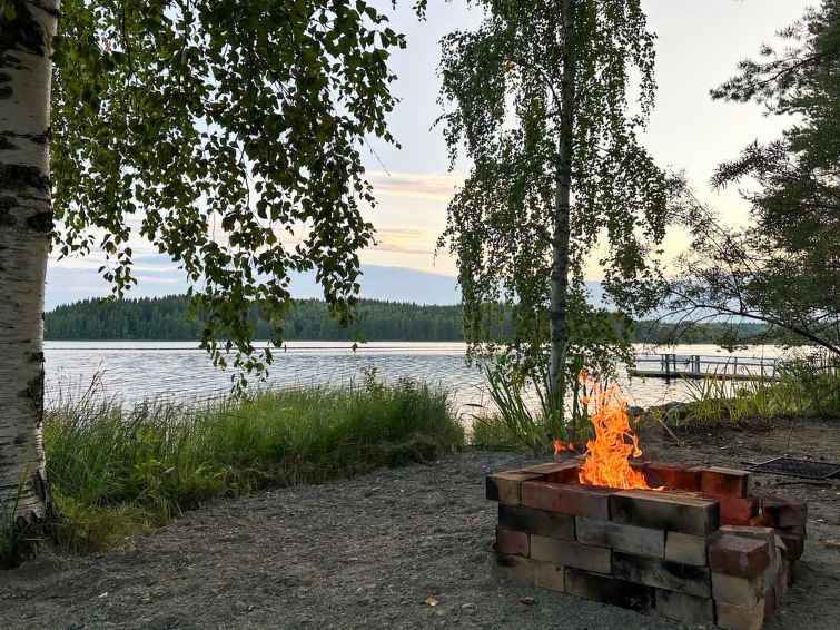 The villa is located on a hill, the lake opens up to the west, on the shore is a spacious pier. Fire place on the beach. Fishing possibility in the lake, berry and mushroom countries nearby during that season.