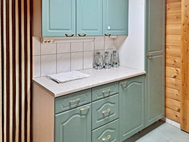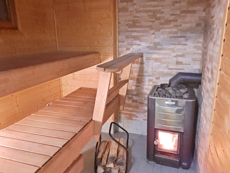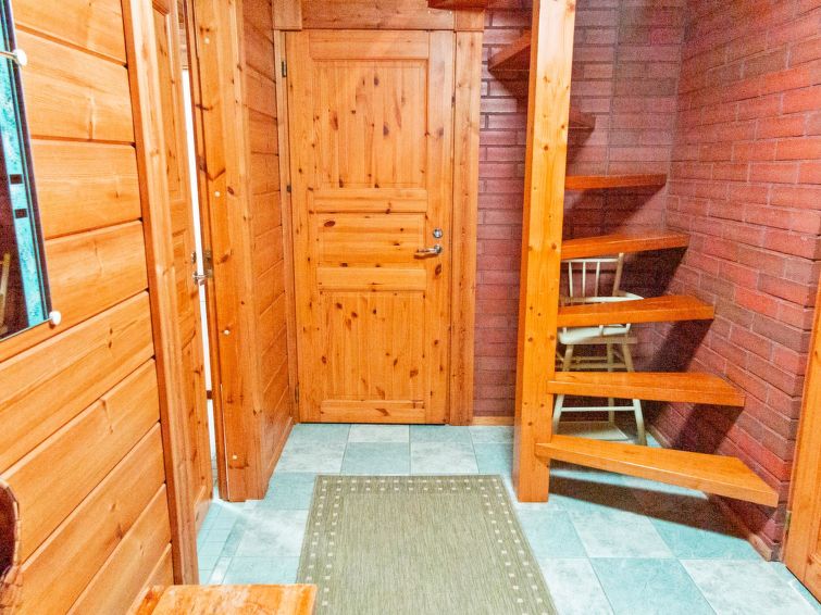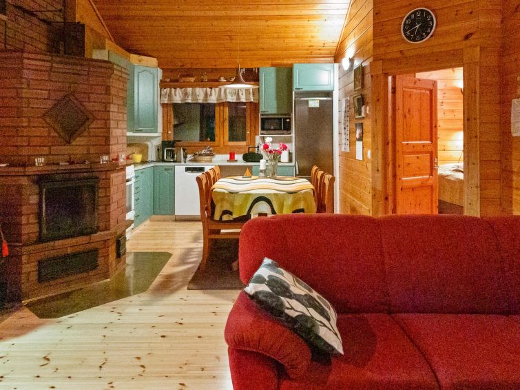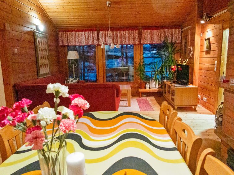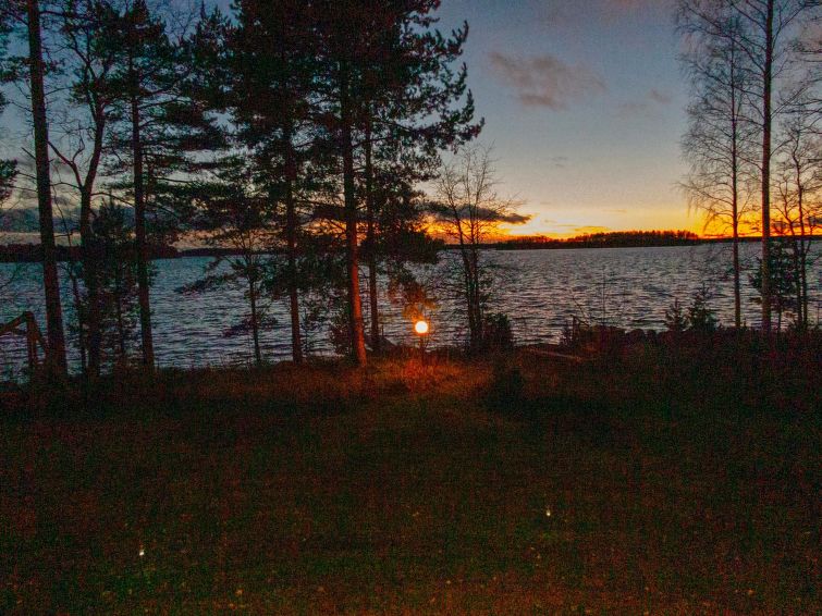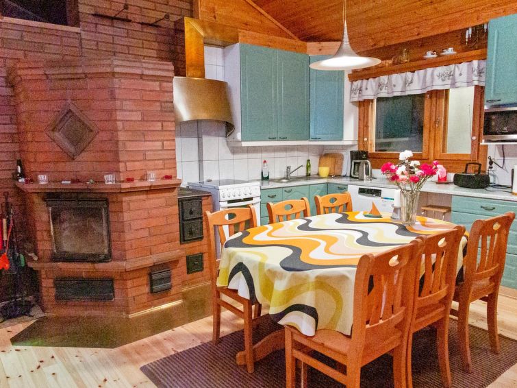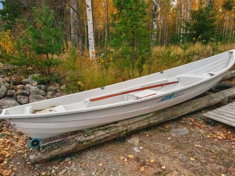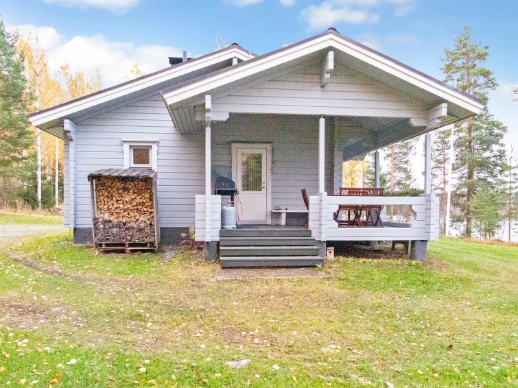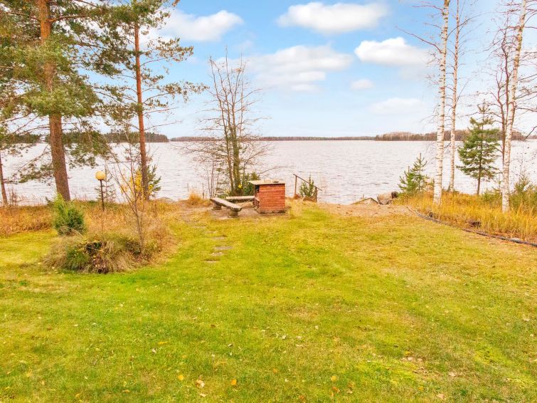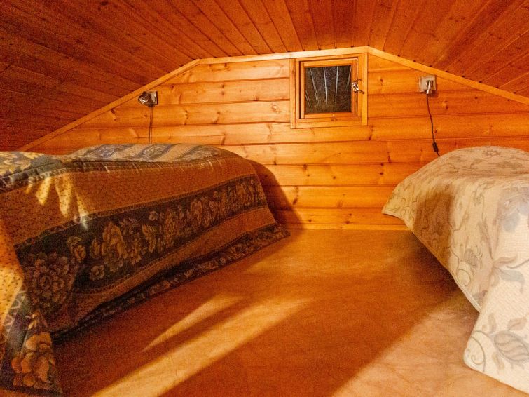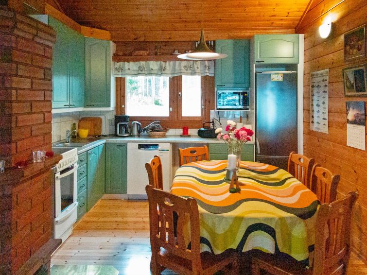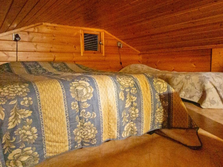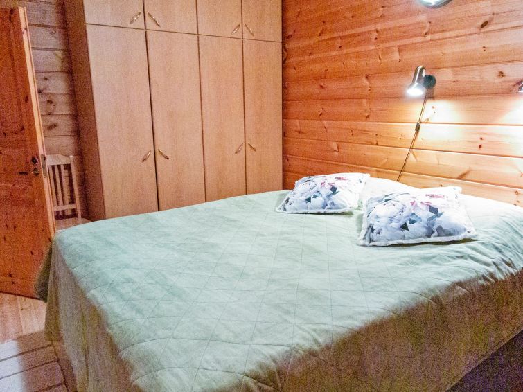 Log cabin 1999, living room/kitchen, 2 bedrooms with double bed in one and single beds in another, dressing room, washroom, sauna, drying room, foyer, open veranda. Sleeping loft (sloping ceilings, maximum height 130 cm) 2 mattresses (other 80 cm wide and other 140 cm wide). Bicycle for hire. Note: not possible get the outboard motor for hire!