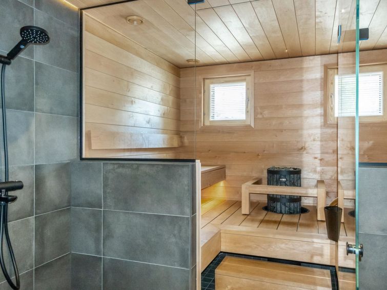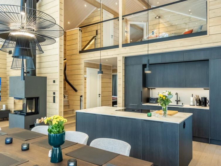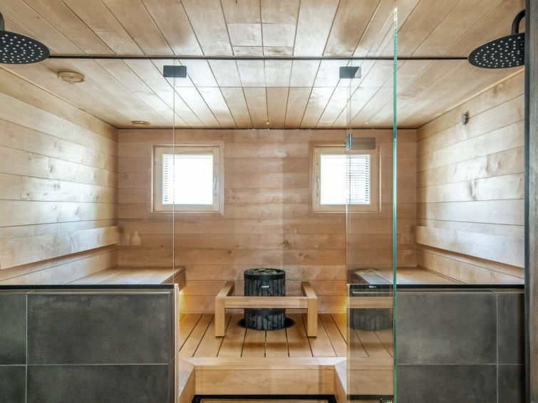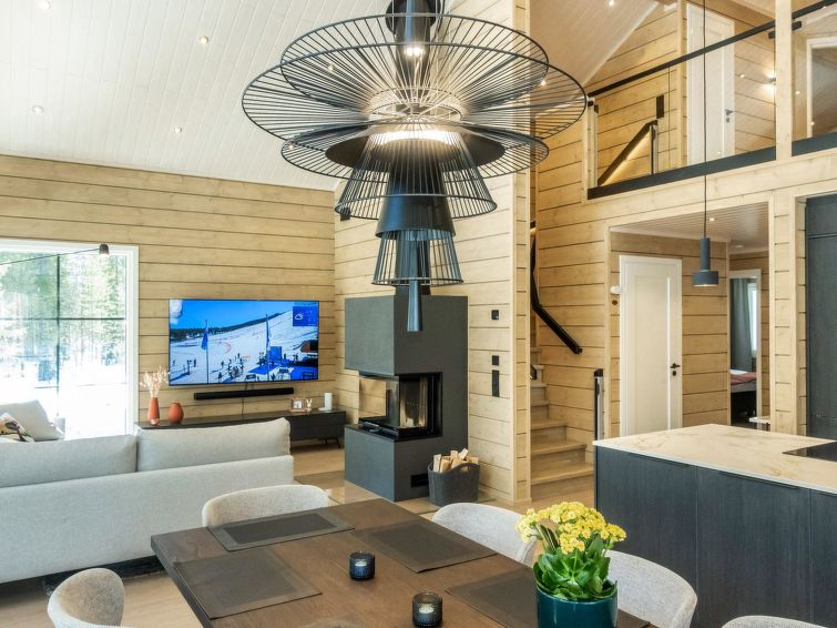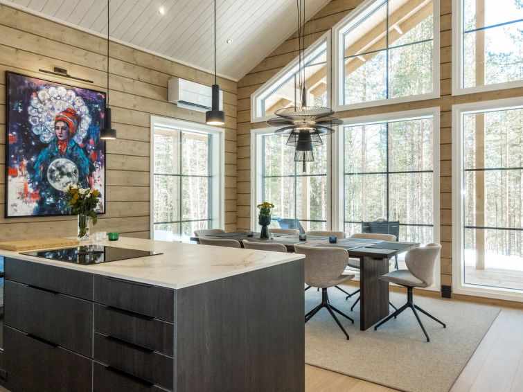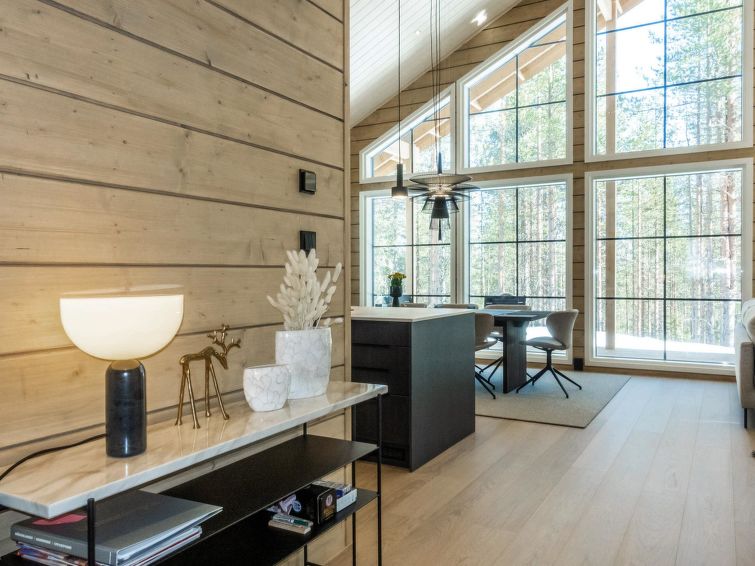 A successful vacation is crowned by high-quality and comfortable accommodation. Svingipolku 5 offers a stylish setting in a new log-built villa, which is completed in 2023. Location is ideal in all seasons due to the villa being located near the center of Levi. For example, a golf course and the ski slopes can be reached easily. This stylish, four-bedroom villa is designed for eight people. The villa's high level equipment and modern interior designed by Interior Design Seija Strand Oy bring quality, functionality, and comfort to your vacation.