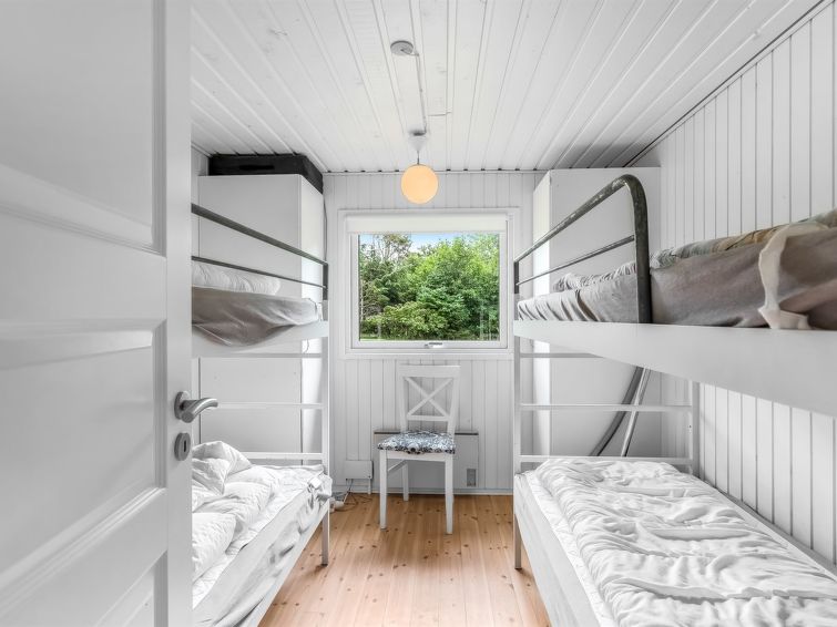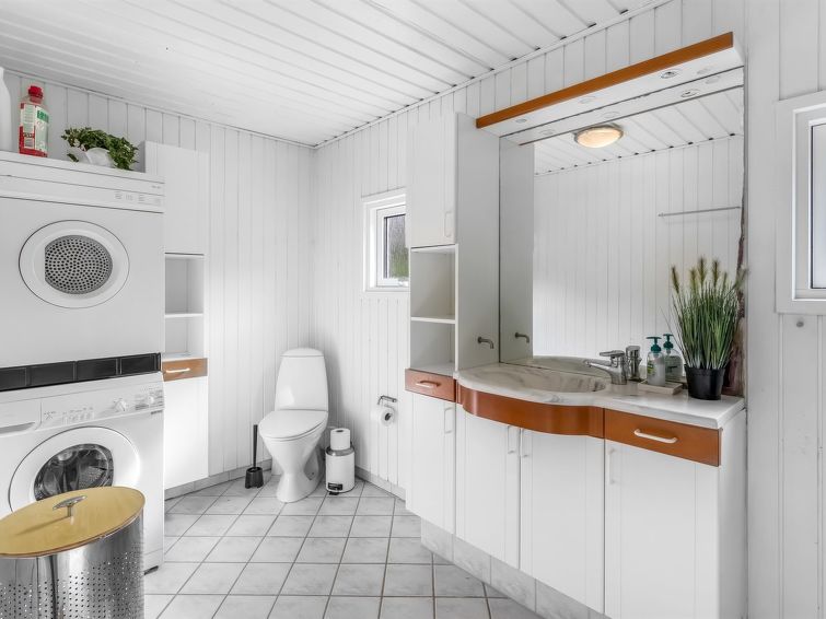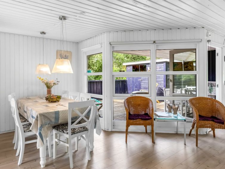 Enmannsbolig, bygget i 1973. 400 m fra sjøen. Privat: uberørt tomt 1'780 m2. Terrasse (22 m2), lekeplass (huske). I huset: vaskemaskin, tørketrommel. Parkering ved hbrukt. Daglivarehandel 500 m. Eieren godtar ikke noen ungdomsgrupper.