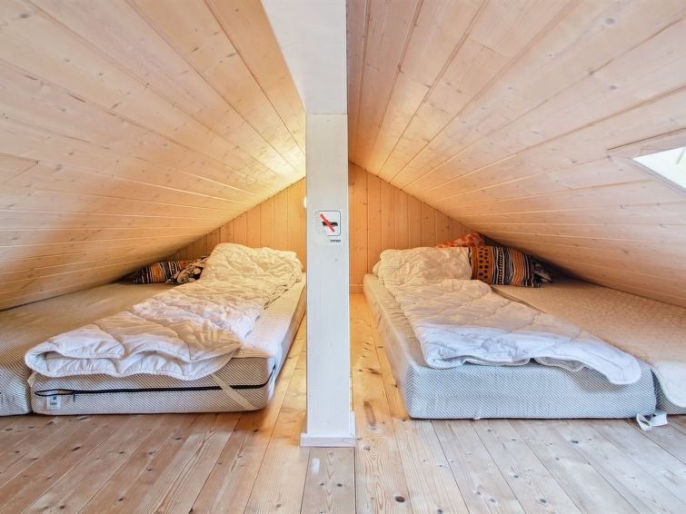 Enmannsbolig, bygget i 2005. 550 m fra sjøen. Privat: uberørt tomt 1'278 m2. Grill, lekeplass (huske). I huset: badstu, fotballsbord, vaskemaskin, tørketrommel. Parkering ved hbrukt. Daglivarehandel 2.4 km. Eieren godtar ikke noen ungdomsgrupper.