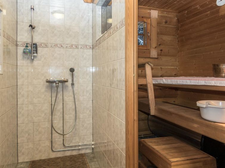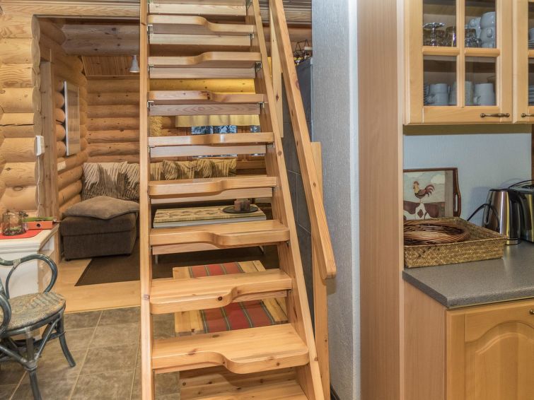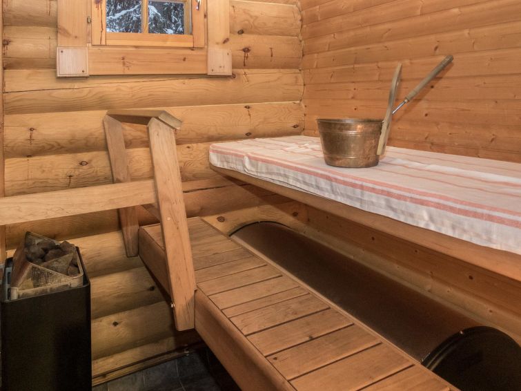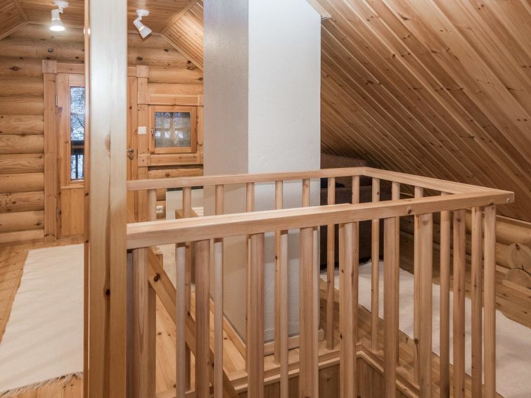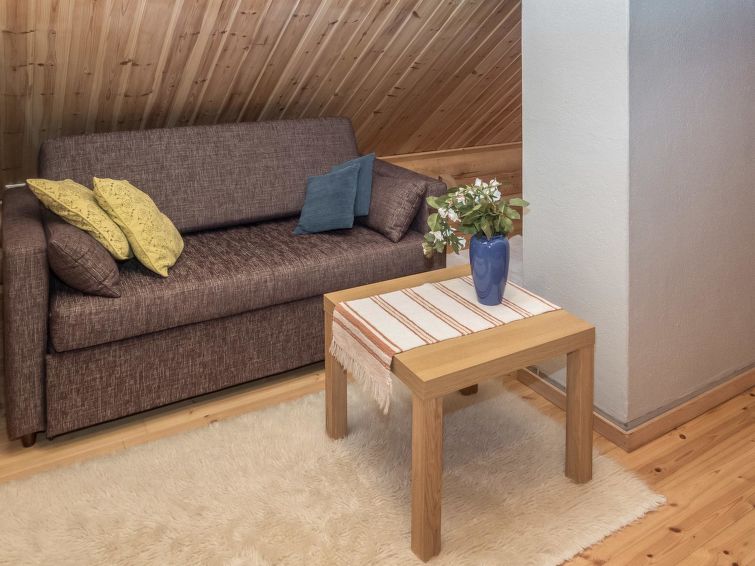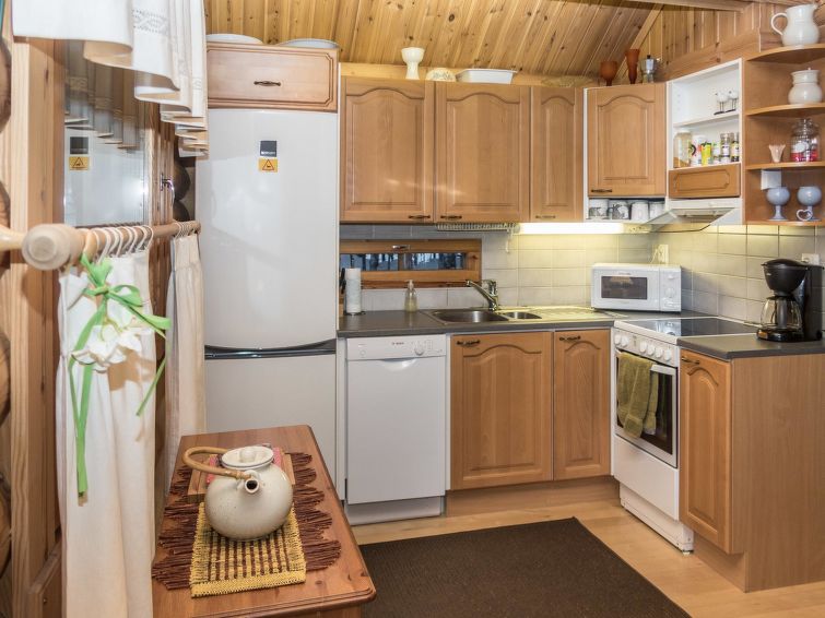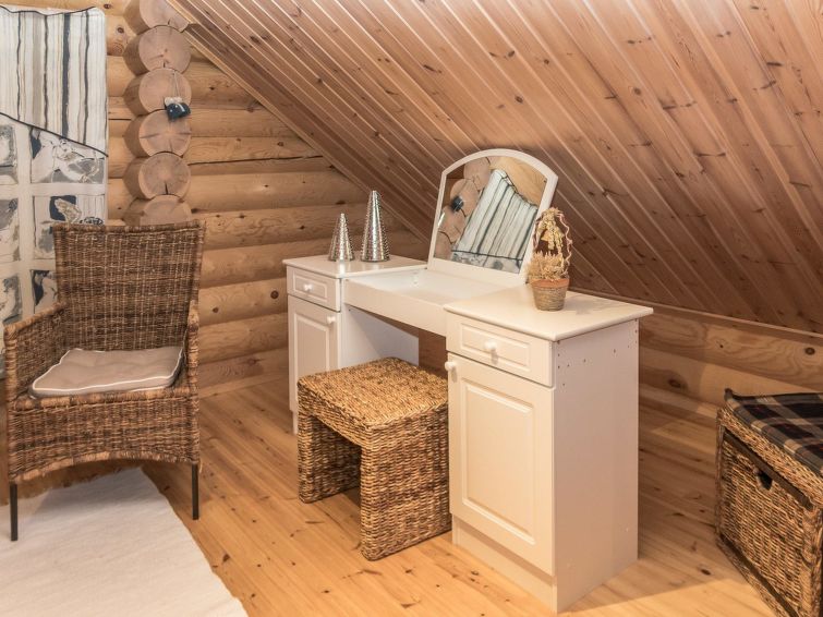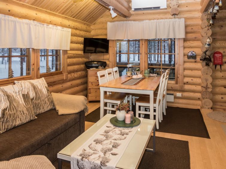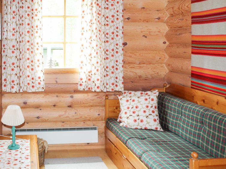 40 km north of Kuusamo, Ruka 15 km, Lake Ajakkajärvi 20 m, sandy beach. Log cottage, built in 1996, bedroom 1 (downstairs): double bed, bedroom 2 (downstairs): convertible bed, 32" Smart TV, loft: convertible sofa, bedroom (loft): 2 beds, living room: convertible sofa (for a maximum of six people), kitchen, electric sauna. Log cottage situated on Lake Ajakkajärvi.