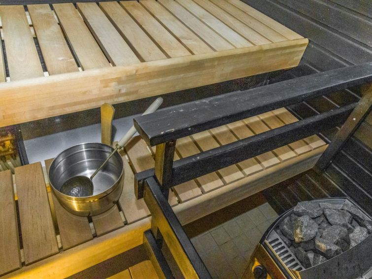 In the heart of Tahko, the first floor alpine apartment of 2003, living room, 2 bedrooms with 2 beds in each, washroom, sauna (electric stove), separate toilet, hallway and terrace.