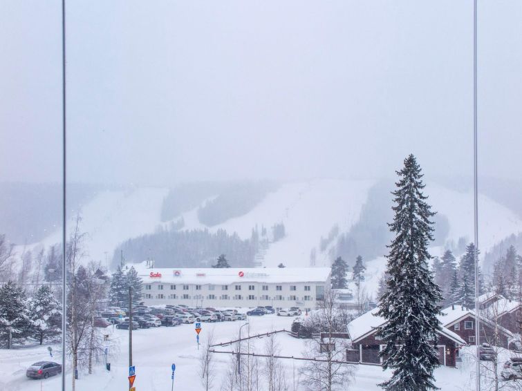 65 km north-east of Kuopio, L.Syvärijärvi 600 m, public swimming shore 1.5 km, no boat. Holiday apartment is located in heart of Tahko on the third apartment floor of the Tahko Spa Suite’s “Orange house”. Tahko Spa 100 m. View from Tahko Spa Junior Suite Orange A10 apartment living room, sauna, bed room and glazed balcony to ski slopes. The holiday apartment has a wireless Wlan connection.