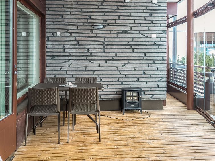 High standard Tahko Spa Junior Suite Orange B6 apartment located in heart of Tahko Ski Resort, built 2006, surface area 59 m² and 18 m² glazed terrace. Apartment has comfortable living room with open plan kitchen. In the living room sofa bed 2 extra beds. Bedroom with 2 separate beds, bedroom has a small shower and WC.