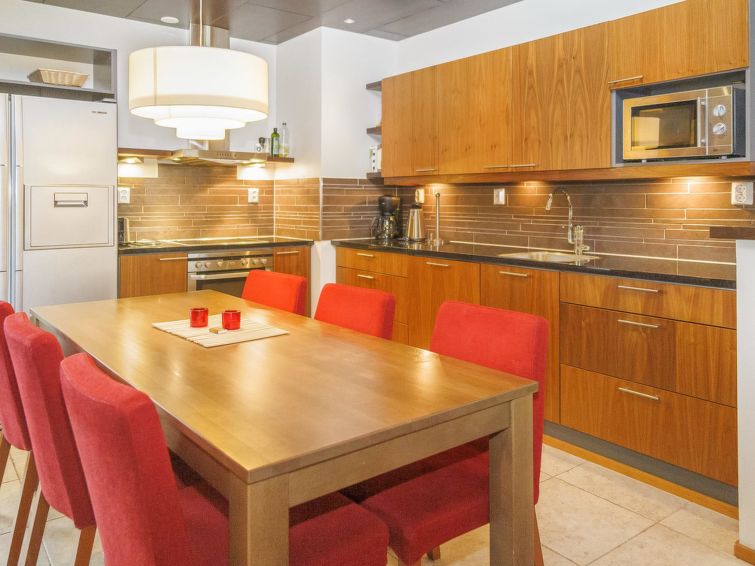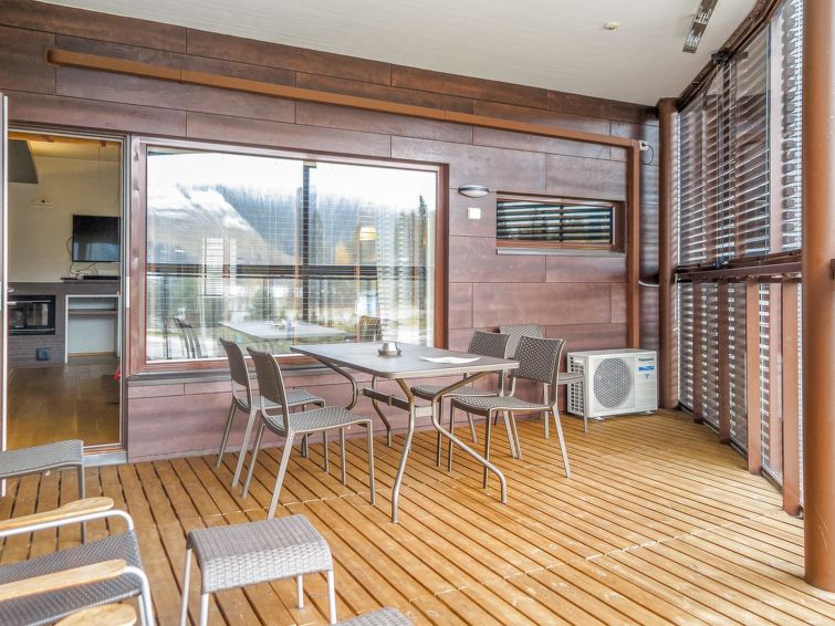 High standard 3rd floor Tahko Spa Suites Orange A 8 apartment located in centre of Tahko Ski Resort, built 2006, surface area 90 m² and 19 m² glazed terrace. Apartment has comfortable living room with open plan kitchen. 2 bedrooms, each with 2 separate beds.
