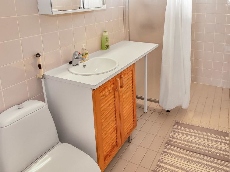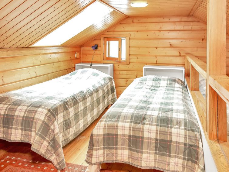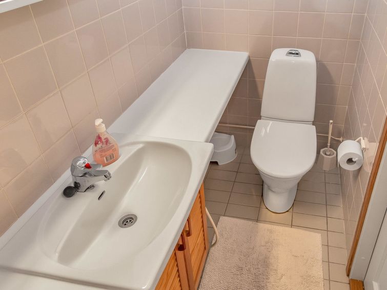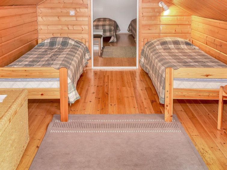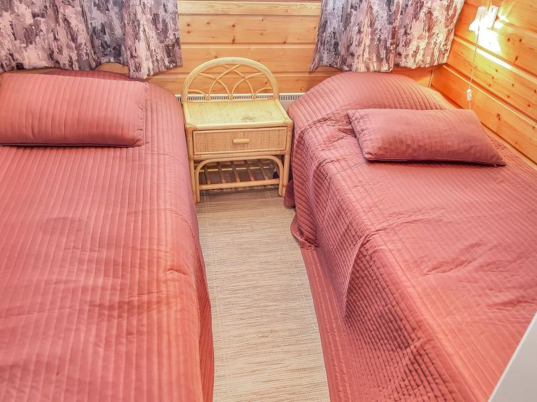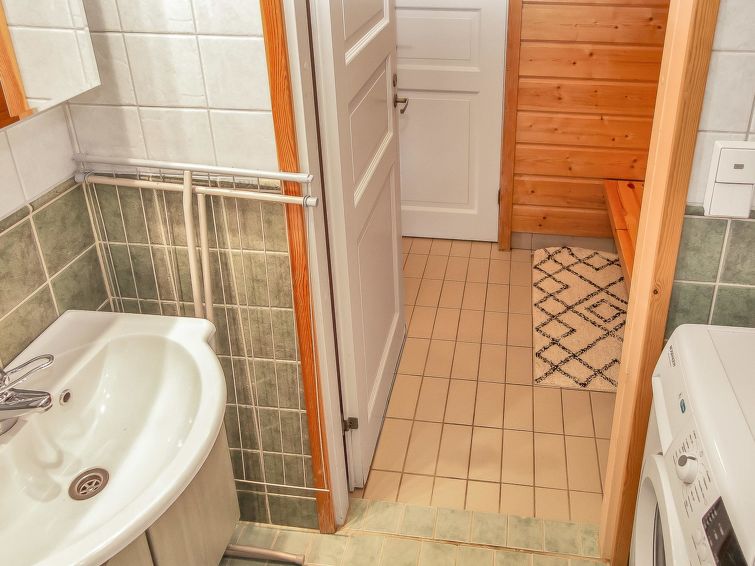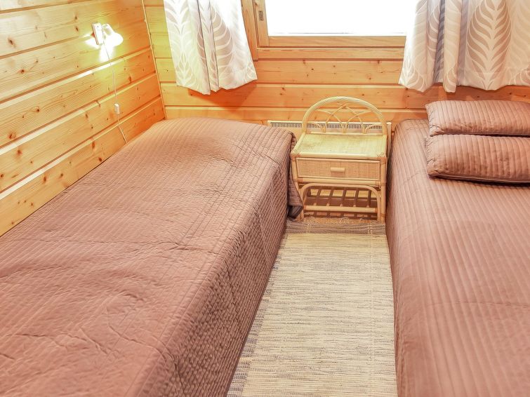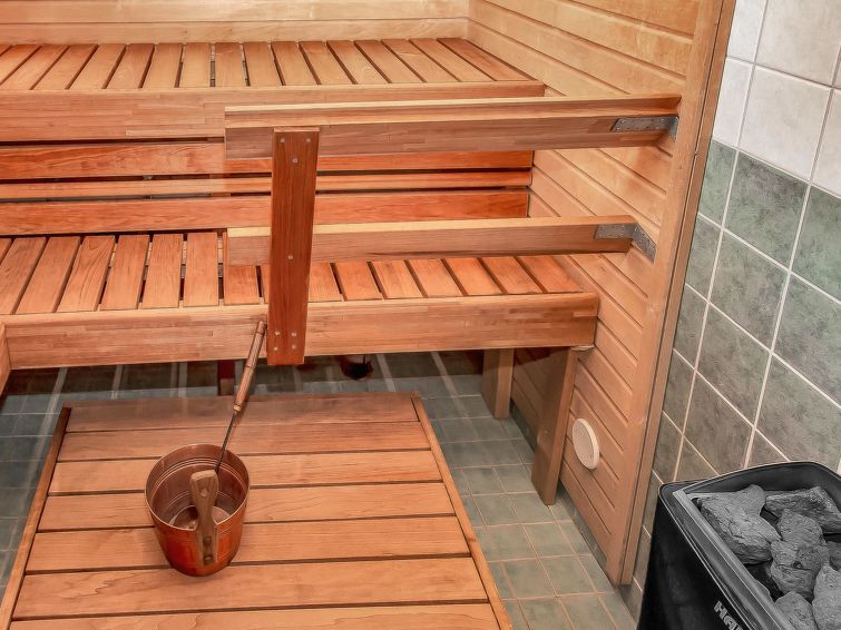 Log apartment from 1992, washrooms and kitchen renovated 2019-2020, living room / kitchen, bedroom with double bed, 2 small bedrooms with 2 beds in each, washroom with shower & toilet, second washroom with 2 showers, separate toilet, dressing room, sauna (electric stove).