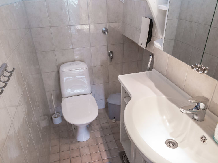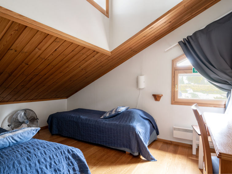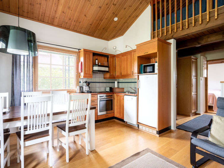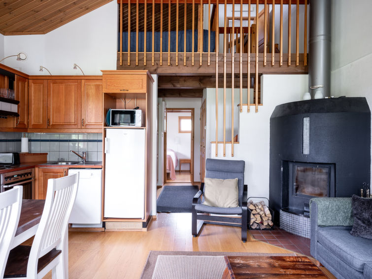 In this semi-detached apartment you have downstairs a living room/kitchen, a bedroom with doublebed, a washroom, a separate toilet, sauna (electric stove), a hall and a terrace. The loft has a bedroom with 2 beds and 2 extra beds in the lobby lof the loft. 5 G Wi-Fi access. Air source heat pump for additional heating and cooling. Distance to the ski slopes approx. 0.8 km, to the spa 0.5 km. 0.4 km to Lake Syväri, 1.5 km to the common shore, no own boat, 13 km to Nilsiä, 65 km to Kuopio. Tahko Golf 0.1km, IKEA and Matkus shopping center 70km. Tahko Old Course 0.1km.
