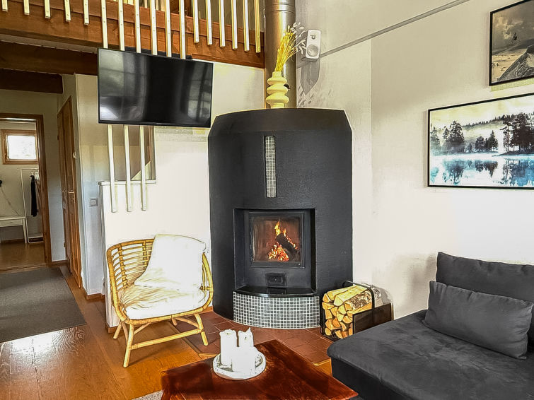 Distance to the ski slopes approx. 0.8 km, to the spa 0.5 km. 0.4 km to Lake Syväri, 1.5 km to the common shore, no own boat, 13 km to Nilsiä, 65 km to Kuopio. Tahko Golf 0.1km, IKEA and Matkus shopping center 70km. Tahko Old Course 0.1km.