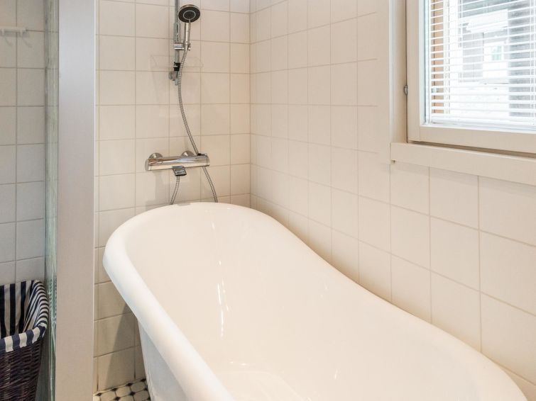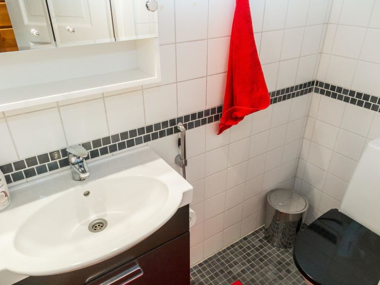 This cosy and comfortable apartment consists of three floors; on the first floor there are 2 bedrooms with 2 beds in each, living room, washroom (2 showers), sauna (electric stove), separate toilet and balcony.