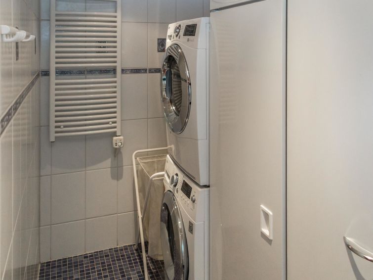 On the middle floor there is a spacious living room/kitchen, a master bedroom with 2 beds, a washroom with a bathtub, a separate toilet and a balcony. On the top floor there is a loft with a lobby with 3 beds and a curtained sleeping alcove with 2 beds. The apartment has 2 drying cabinets for clothes, 2 air heat pumps, wi-fi (150 Mbit).
