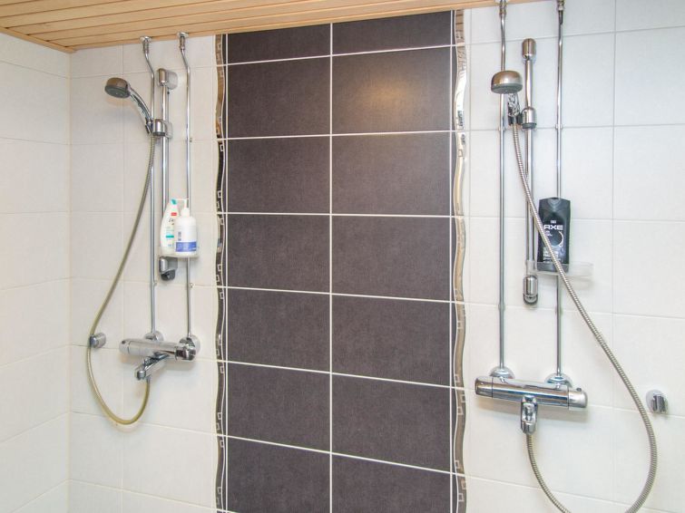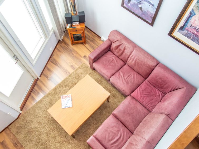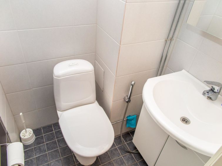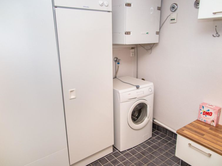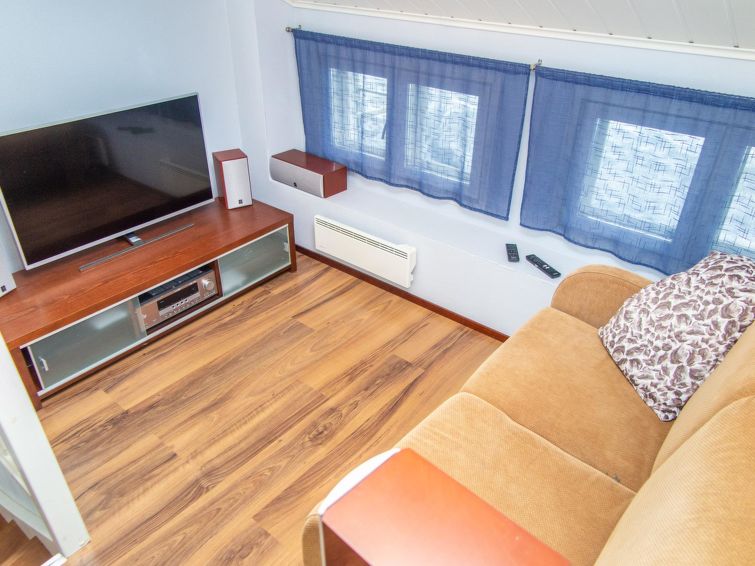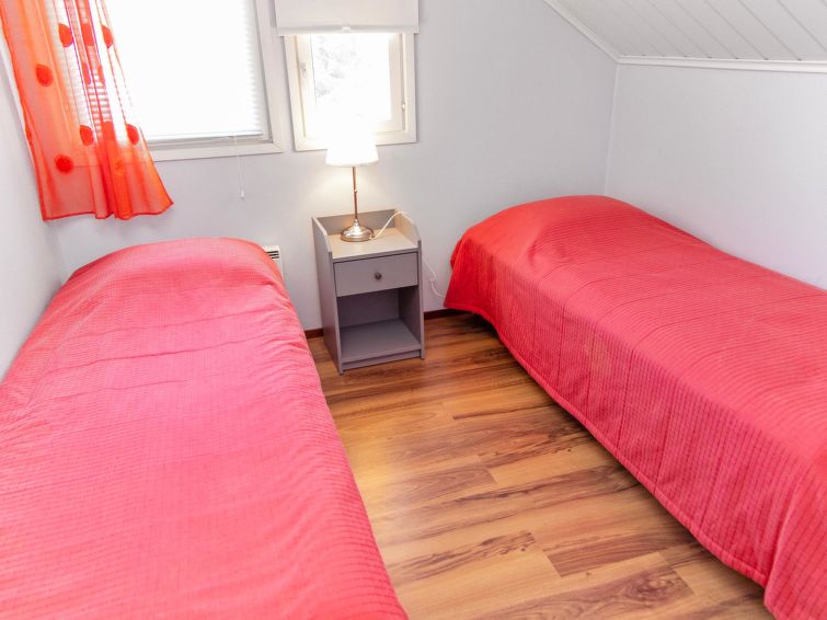 Puurakenteinen huoneisto vuodelta 2006, keskikerroksessa tupakeittiö, makuuhuone parivuode, eteinen, erillinen WC ja terassi. Yläkerrassa aula ja 2 makuuhuonetta 2 vuodetta kummassakin. Alakerrassa pesuhuone, takkahuone levitettävä vuodesohva 2:lle, kodinhoitohuone, sauna (sähkökiuas) ja terassi. Ilmalämpöpumppu on myös viilentävä.
