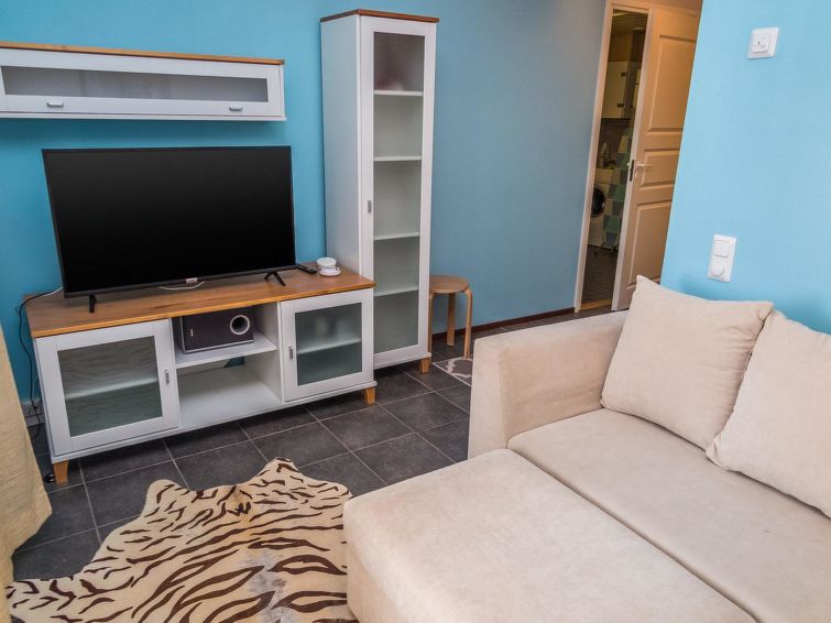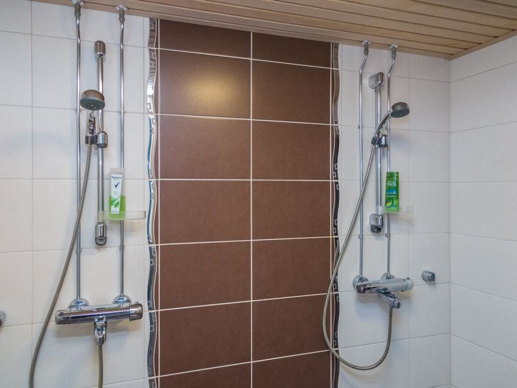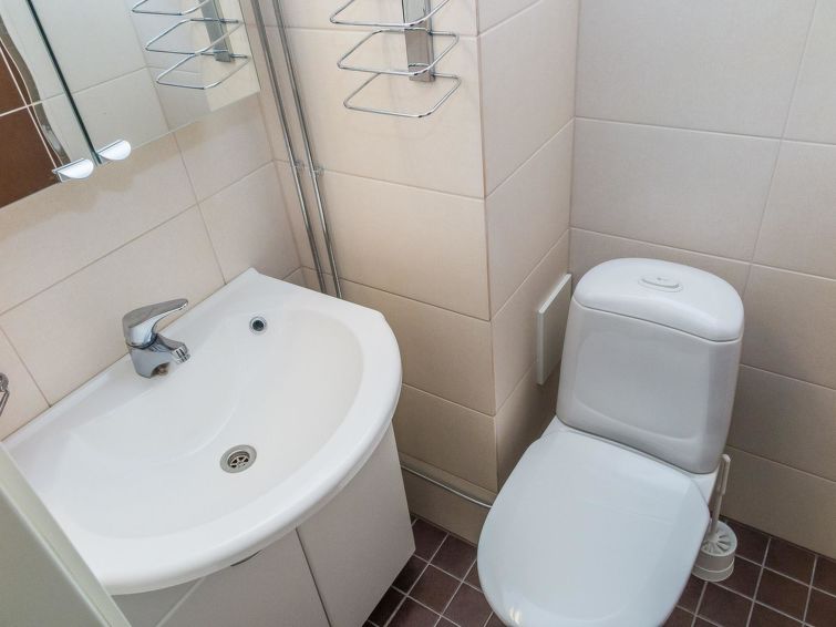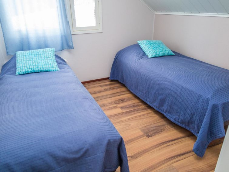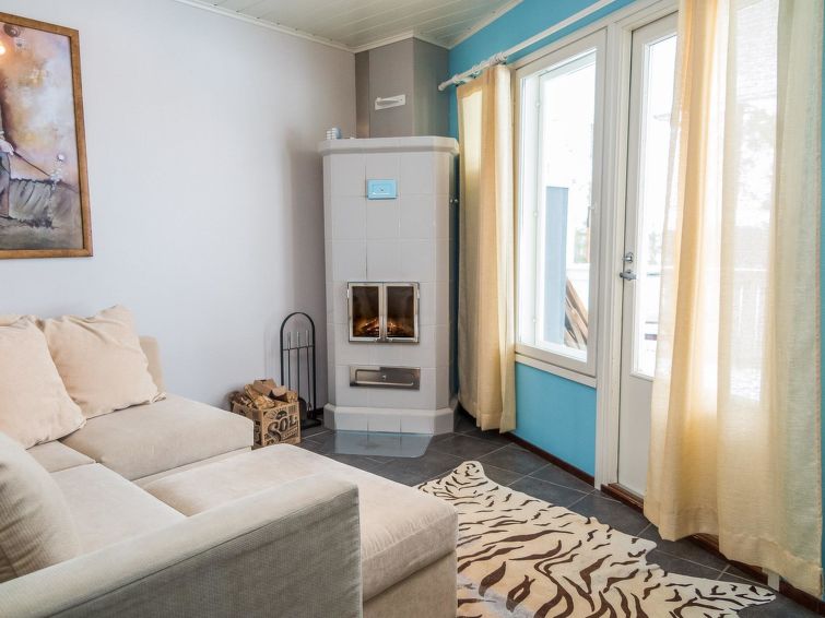 Puurakenteinen huoneisto vuodelta 2006, keskikerroksessa tupakeittiö, makuuhuone parivuode, eteinen, erillinen WC ja terassi. Yläkerrassa aula ja 2 makuuhuonetta 2 vuodetta kummassakin. Alakerrassa pesuhuone, takkahuone levitettävä vuodesohva 2:lle, kodinhoitohuone, sauna (sähkökiuas) ja terassi. Ilmalämpöpumppu, jossa on myös viilennys.