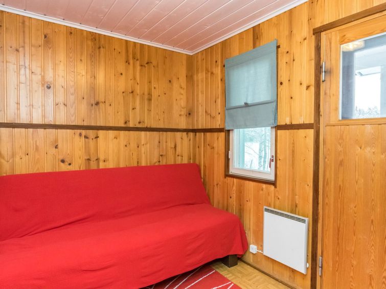 Wooden cabin 1987, renovated 2008, kitchen, living room with 1 extra bed, 2 bedroom both with 2 beds, sauna, shower room, dressing room 1 bed, foyer, open veranda. Outside power point for the car. Plenty to see and do, see the information text of the area. One pet allowed, extra charge for other pets, 10 €/pet. Bed and high chair for a baby if needed.