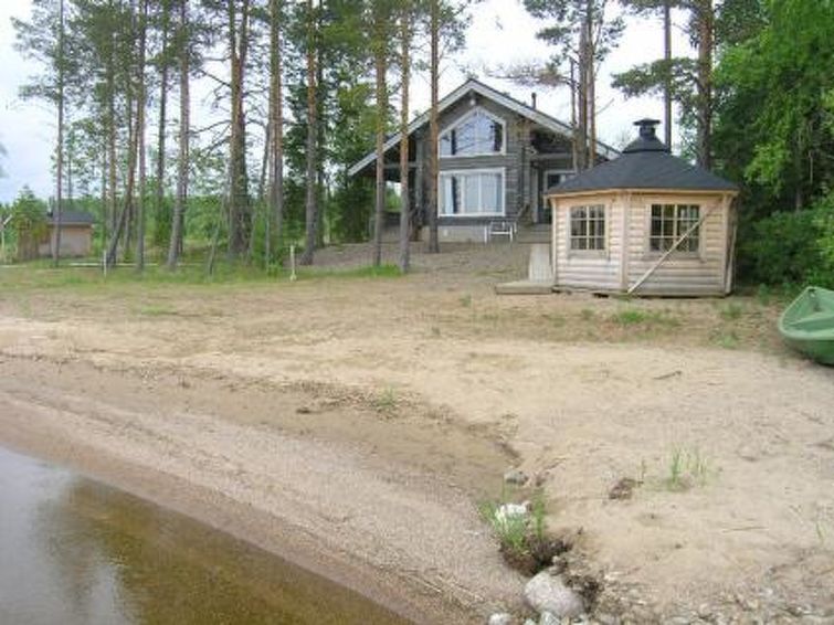 Log cabin in peaceful location, large lake nearby. Flat shore, suitable for beach games.