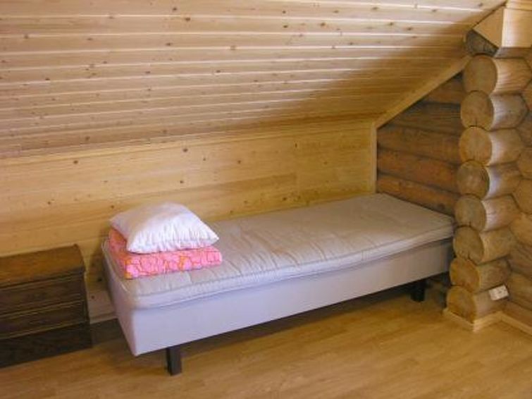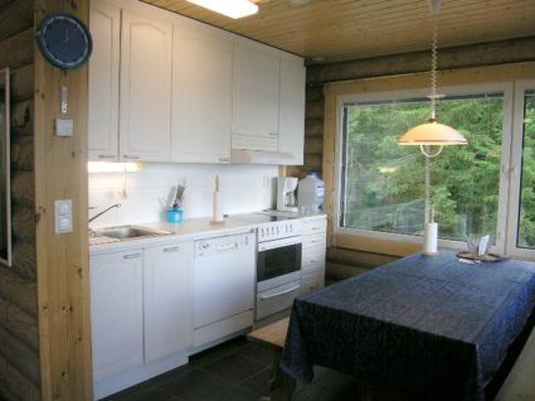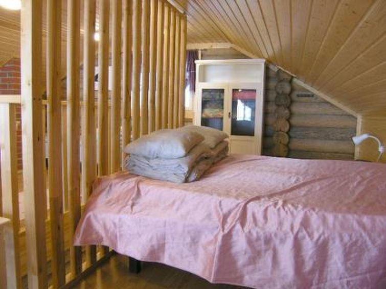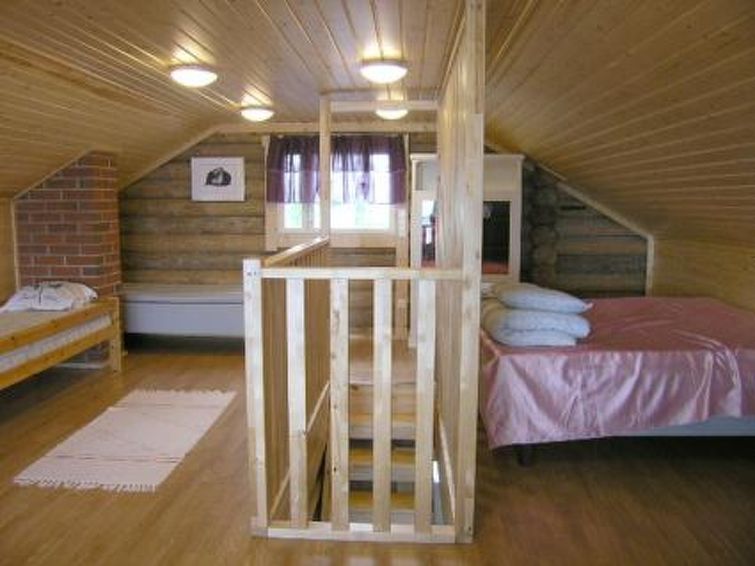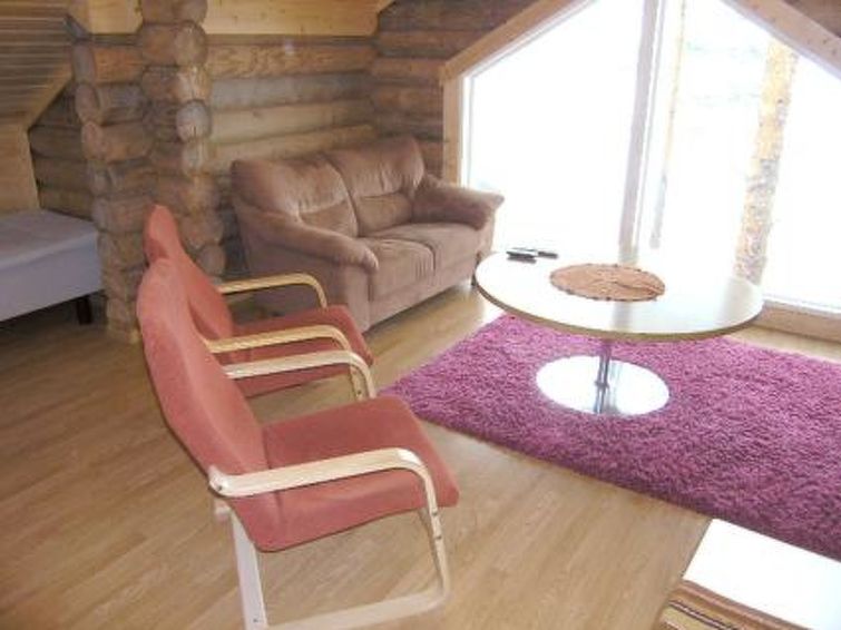 Log cottage 2011, kitchen-living room, bedroom with double bed, sauna (wood-burning stove), bathroom / wc, upstairs double bed and 3 single beds. Downstears underfloor heating, upstairs radiators. Air source heat pump. 2 TVs.