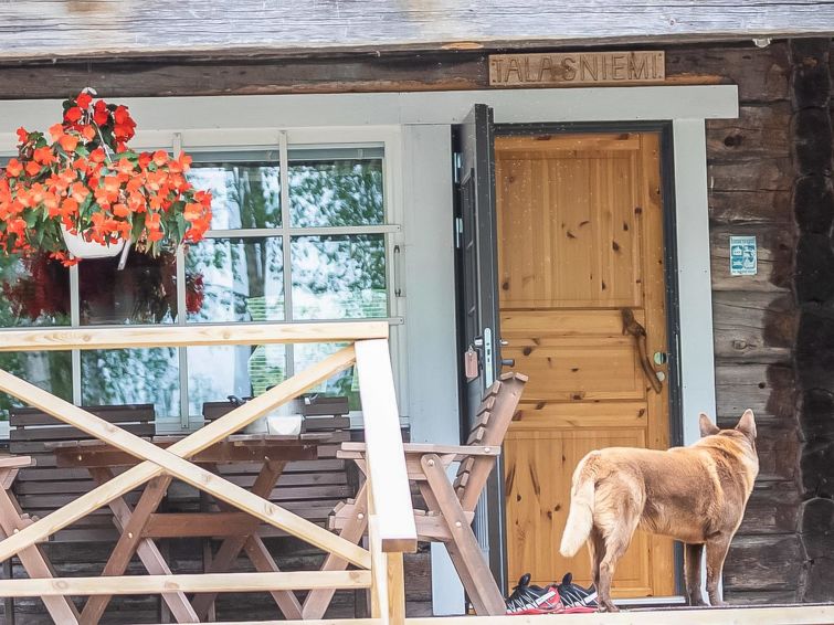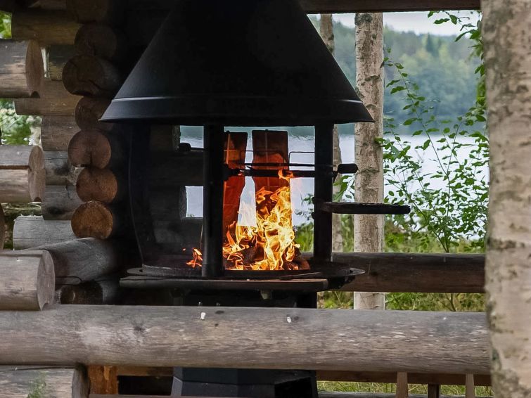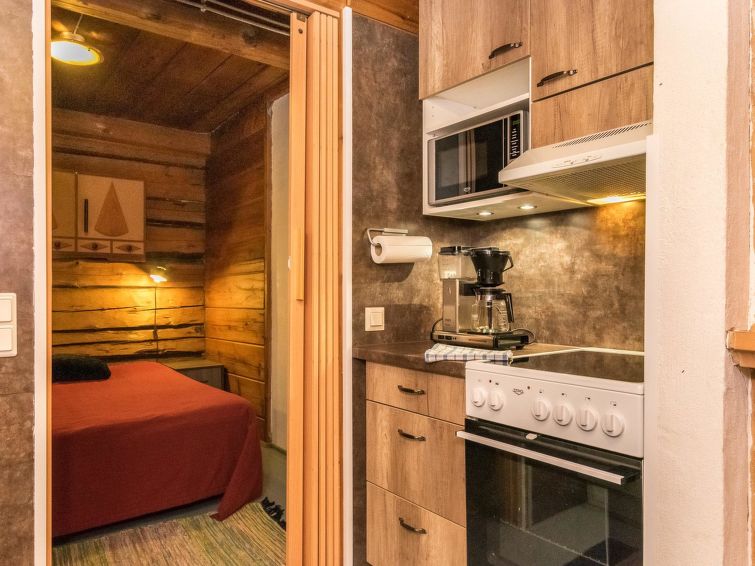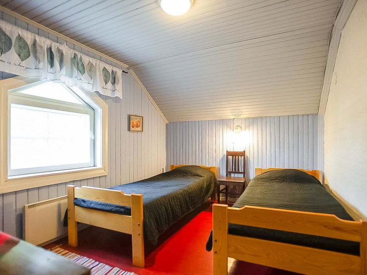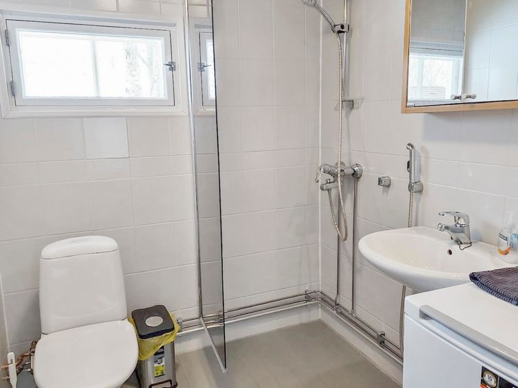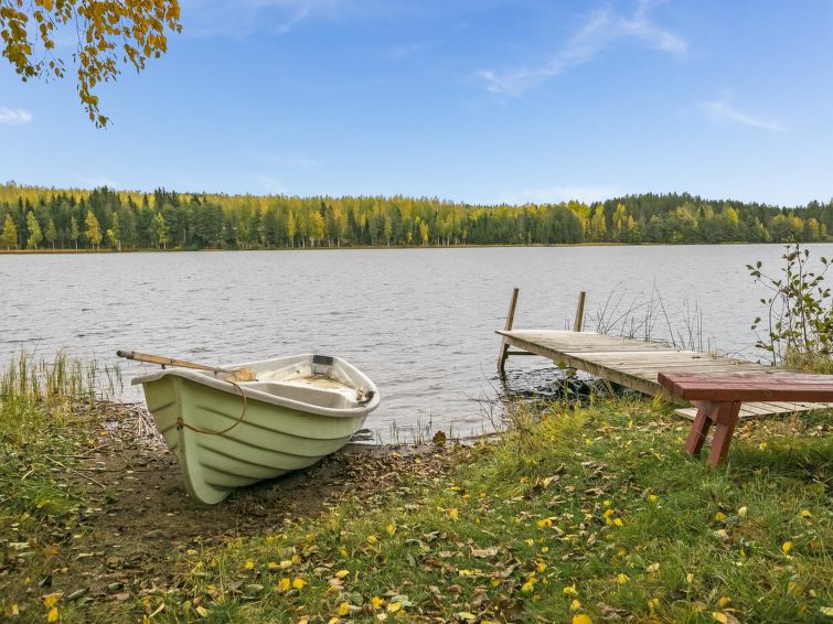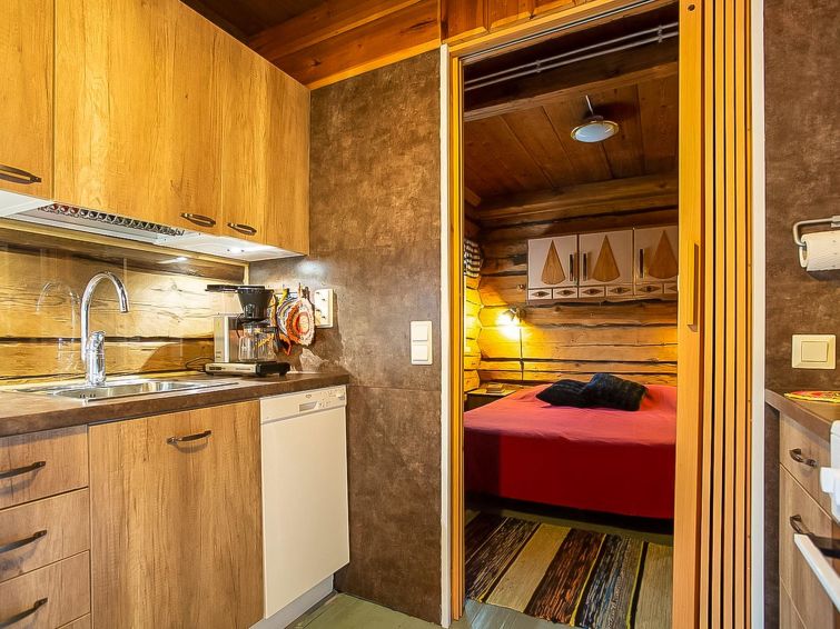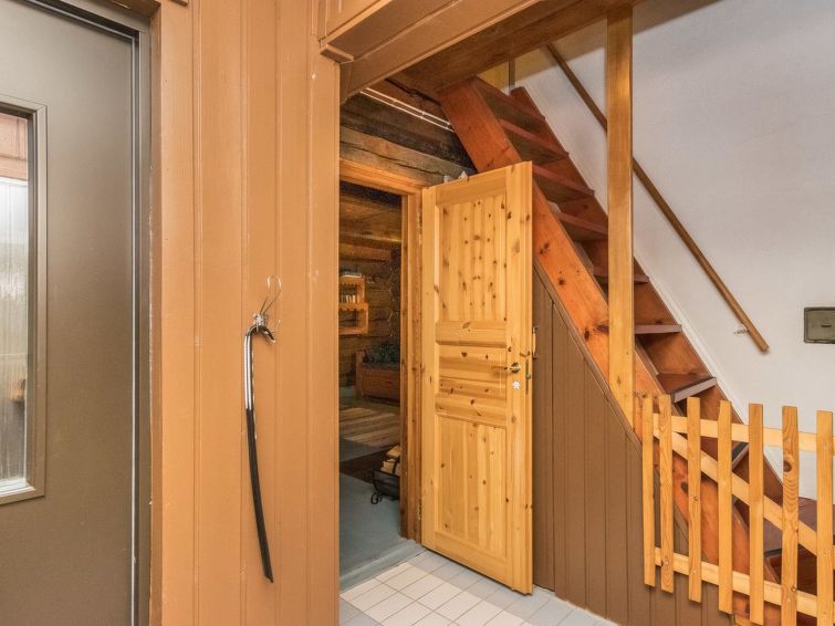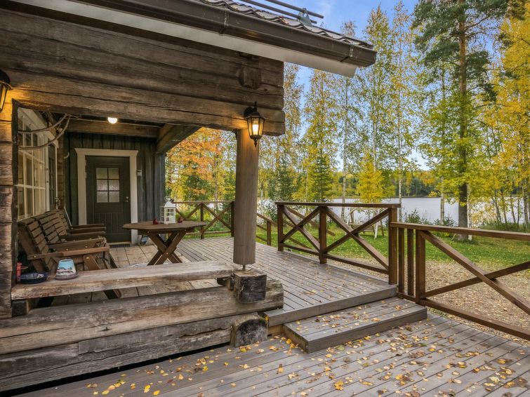 Log cabin 1978, renovated 1998, living room/kitchen, bedroom with double bed, sauna, washroom (shower and wc), dressing room, open veranda. Upstairs: bedroom with 2 beds, hall. Air source heat pump.
