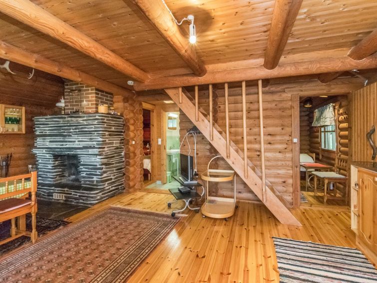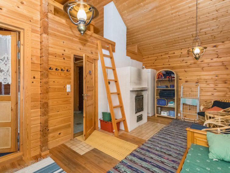 Log cottage 1982, complete renovation 2001, living room/kitchen, bedroom 2 beds, bedroom 1 bed, washing room, upstairs alcove 2 beds, lobby 1 extra bed, open porch.