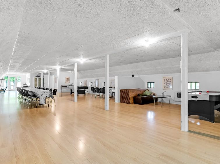 "Tatiane" - 10km from the sea in Western Jutland", 9 rom hus 450 m2. Passer for 17 voksne + 6 barn. Stue med, TV. 1 rom med, 1 dobbeltseng. 1 rom med, 1 dobbeltseng. 1 rom med 3 senger. 1 rom med 2 senger. 1 rom med 2 senger. 1 rom med 2 senger. 1 rom med 2 senger. 1 rom med 1 seng og 1 x 2 køysenger. 1 rom med 1 seng og 1 x 2 køysenger. Kjøkken (stekeovn, oppvaskmaskin, 12 keramiske kokeplater, mikrobølgeovn, frys). 4 dusjer/WC. Fasiliteter: høy barnestol barneseng (ekstra). Internett (trådløs LAN [WLAN]). Vennligst merk: røykfri bolig. Max kjæledyr/små hunder tillatt 2 kjæledyr/små hunder tillatt.