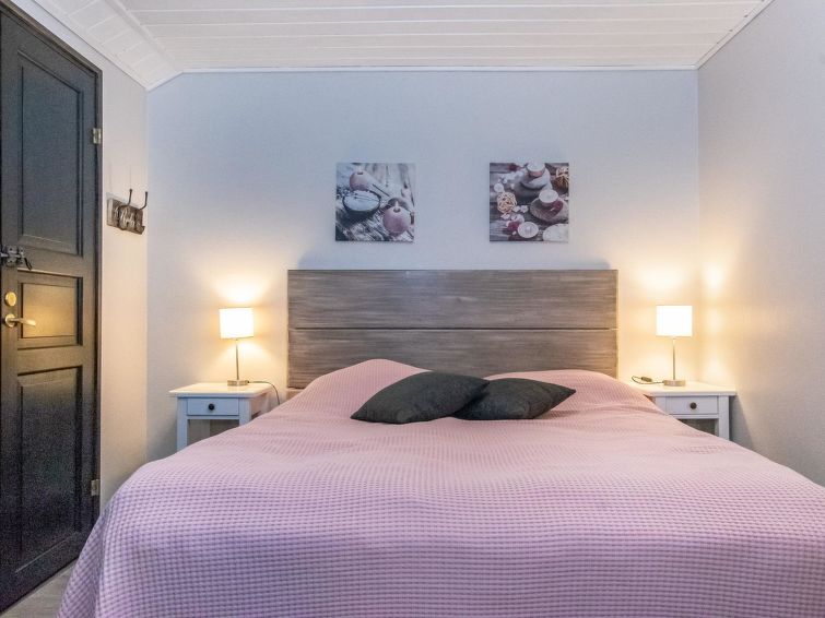 The apartment has a kitchen-living room, which conveniently connects the dining and lounge areas. On the living room side you can relax and watch TV. In the dining area you can enjoy the good atmosphere and the warmth of the fireplace.