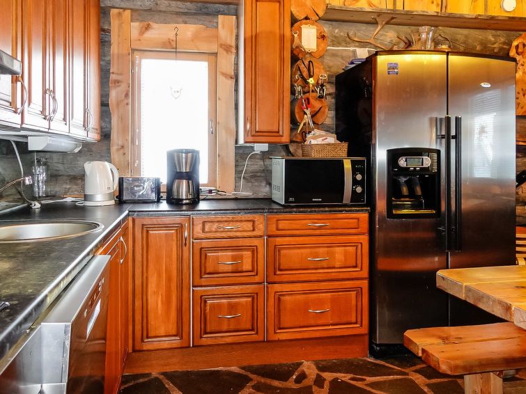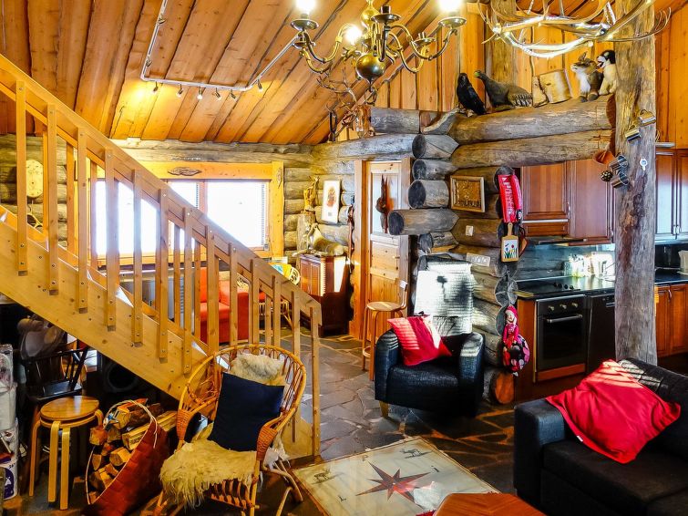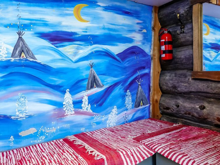 Teeritaivas is a spacious and colorfully decorated kelo log cabin in the calm Levijärvi area. Cross country skiing trail nearby (within 100 m distance), along the road distance is 200 m.