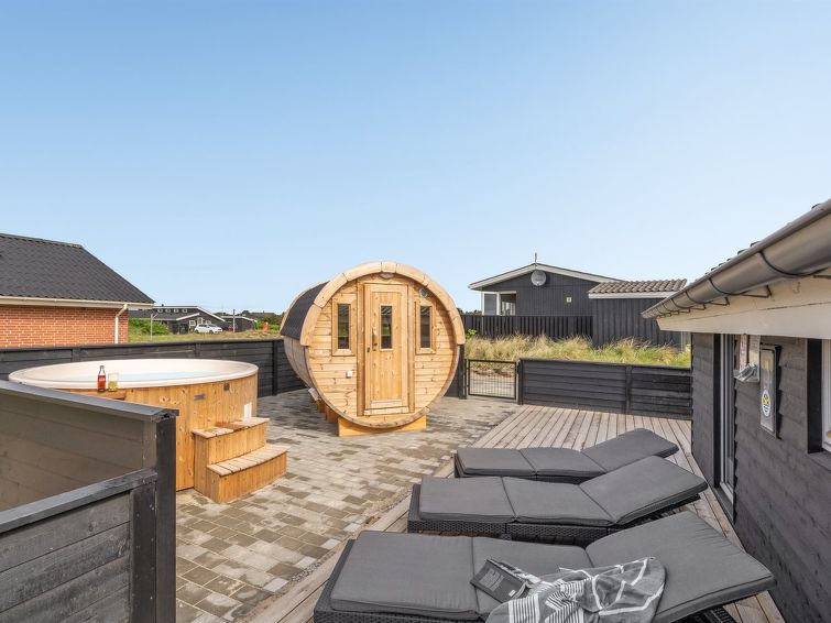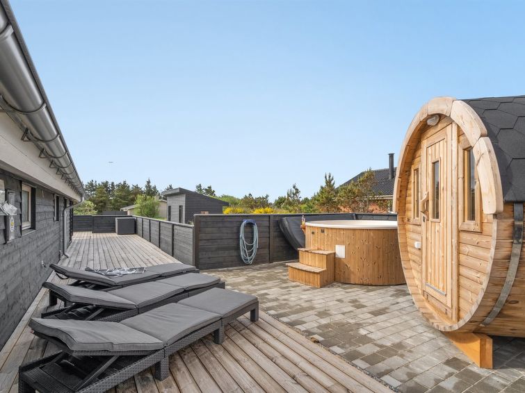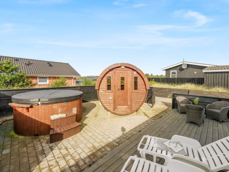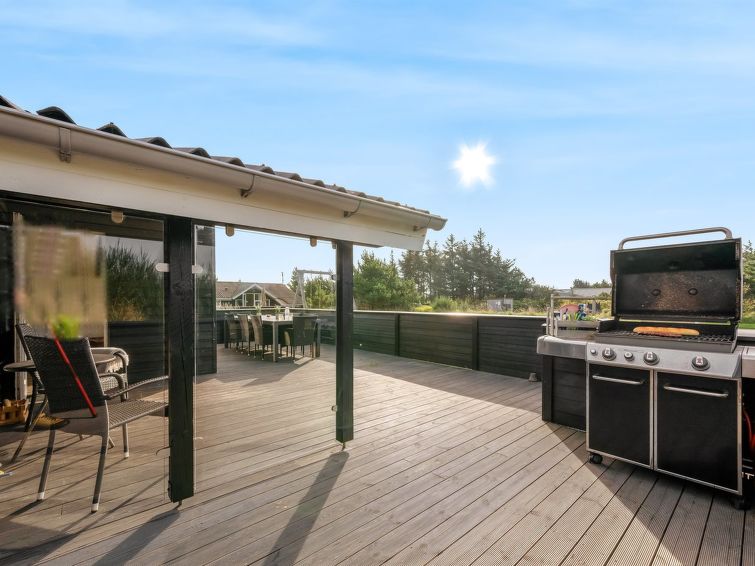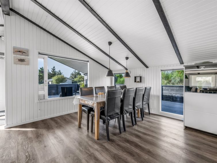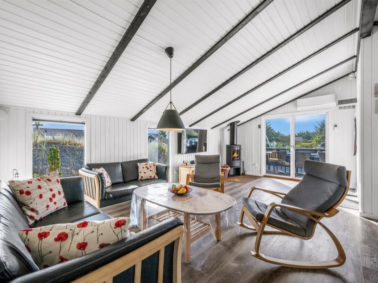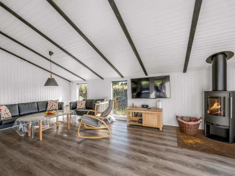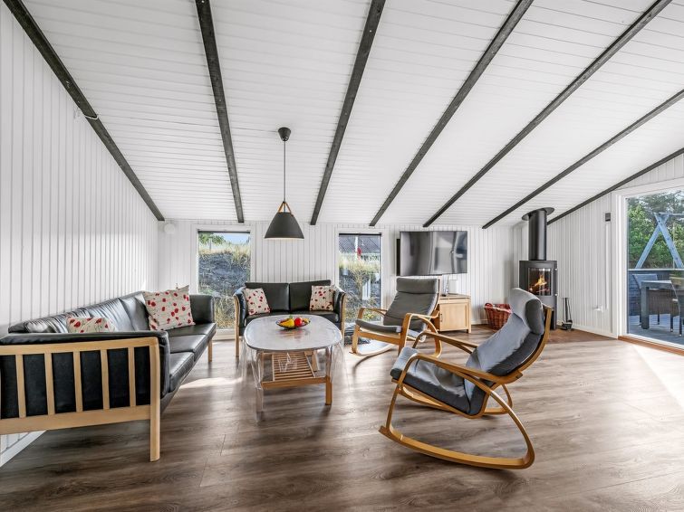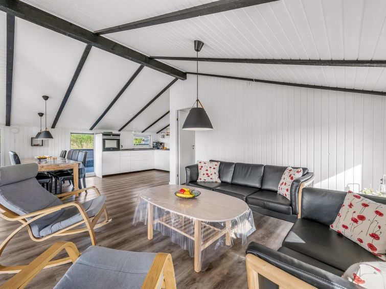 "Teoline" - 500m to the inlet in Western Jutland", 4 rom hus 101 m2. Passer for 8 voksne + 1 barn. Stue med, TV og stereoanlegg. 1 rom med, 1 dobbeltseng. 1 rom med, 1 dobbeltseng. 1 rom med 2 senger. 1 rom med 2 senger. Kjøkken (stekeovn, oppvaskmaskin, 4 induksjonskomfyr, mikrobølgeovn, frys). Dusj/WC. Terrasse 8 m2, dekt. Fasiliteter: Internett (trådløs LAN [WLAN]). Vennligst merk: røykfri bolig. Max kjæledyr/små hunder tillatt 2 kjæledyr/små hunder tillatt.
