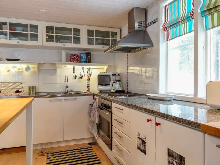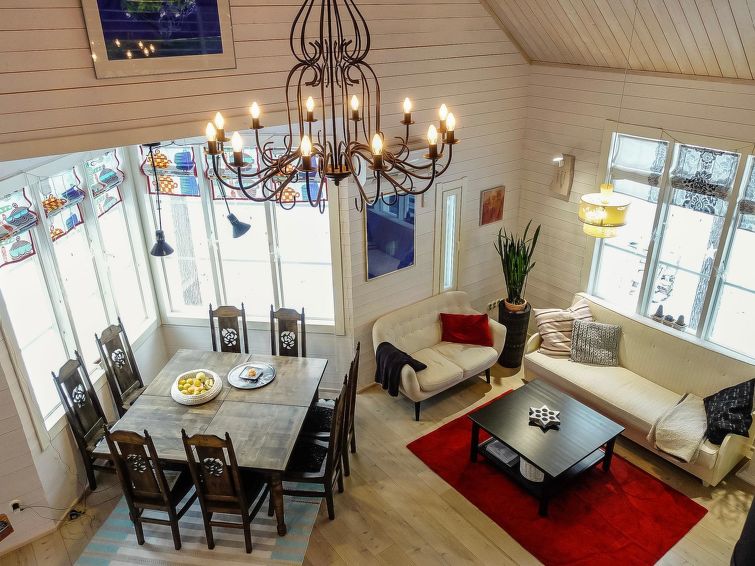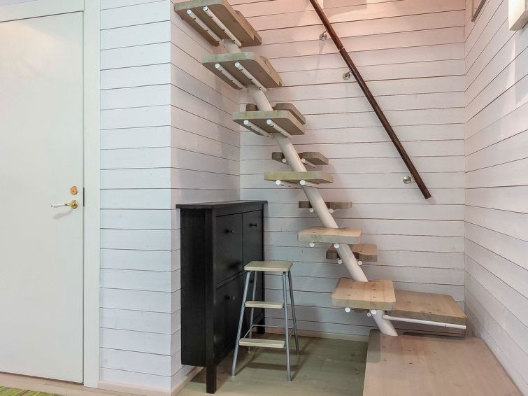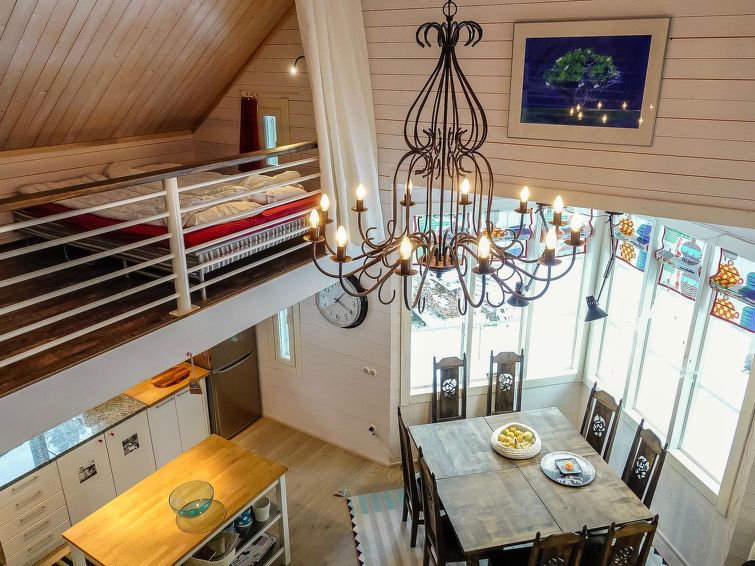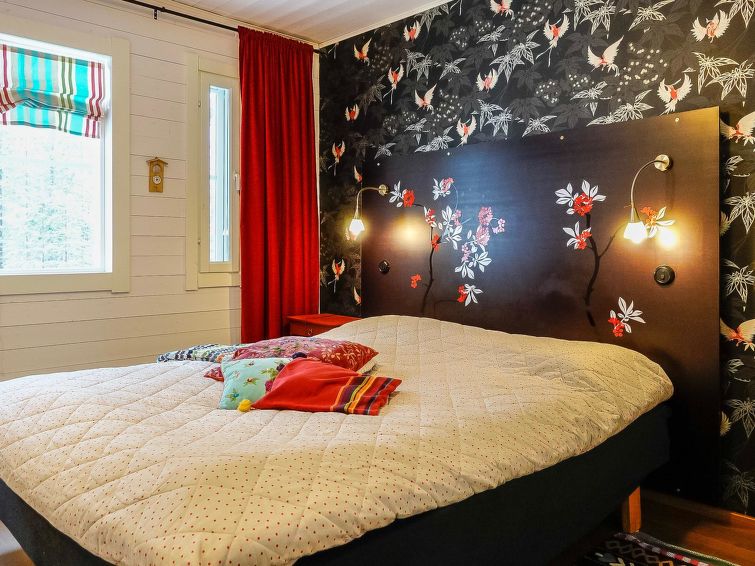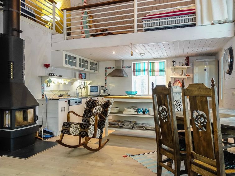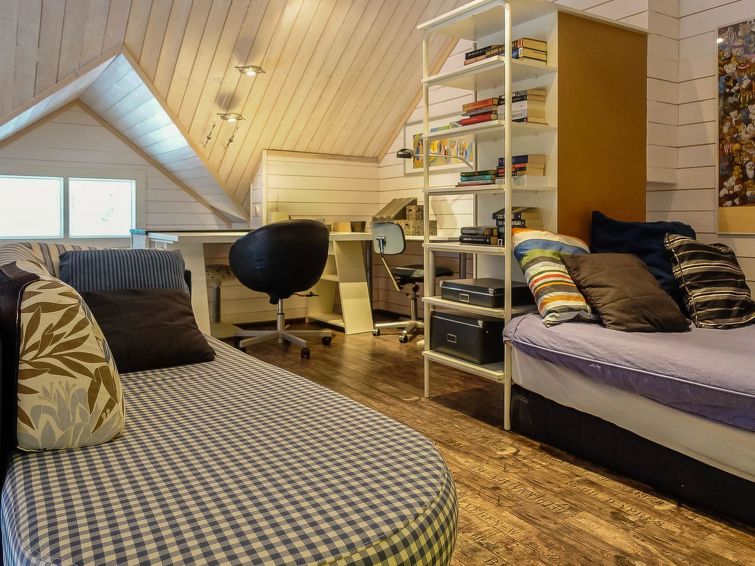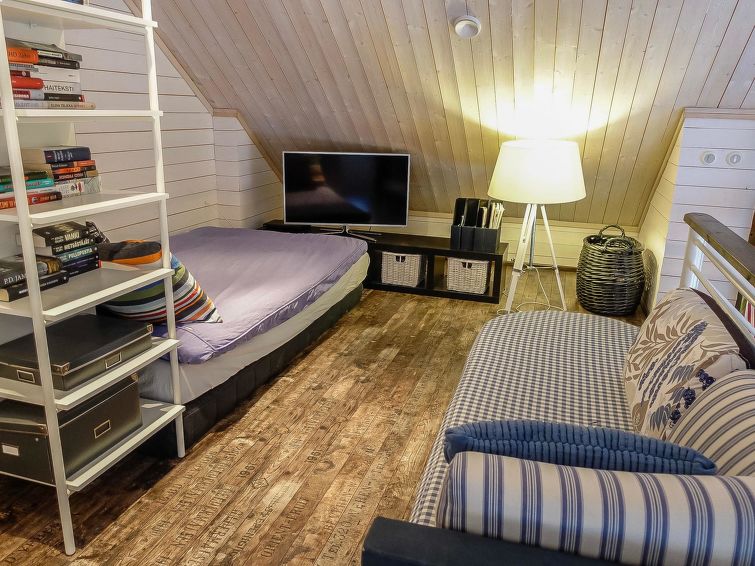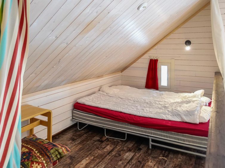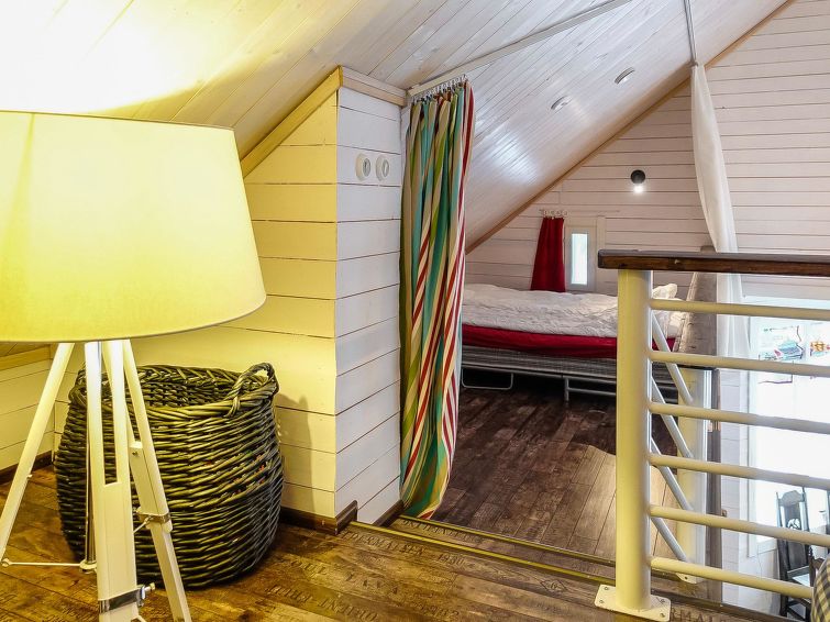 Loft: a double bed in its own compartment, also a 120 cm wide mattress and sofa on the loft, steep open stairs to the loft. Please note that the cottage is maximum for 6 persons.