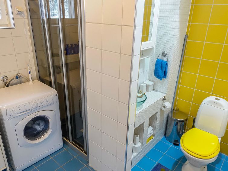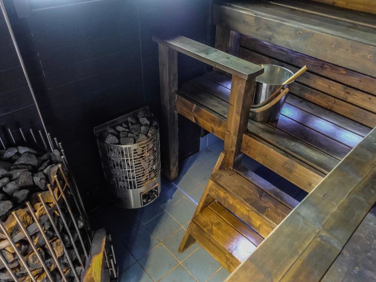 Sauna has both wood and electric stove, semi-warm, glazed veranda, separate toilet and partly covered terrace. Heating of the cottage with ground-air heat pump. The fireplace is a lightweight metal fireplace. The washing machine has a drying function.