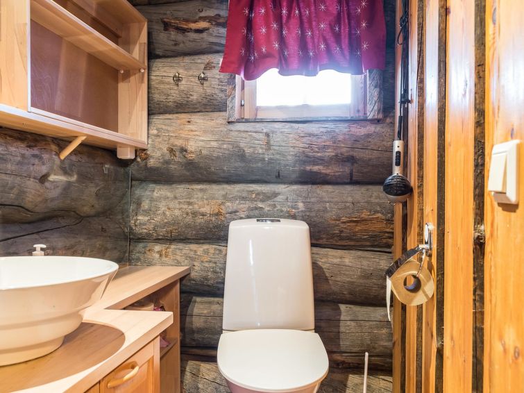 The cabin has four bedrooms (two on the ground floor, two on the upper floor), in addition lounges, as well as upper and lower floor. There is a large dining room in ground floor where is space for dining even for 10 people at a time. There is also a separate lounge and dressing area with sauna and washing facilities. There are two showers and separate WC’s in the cabin. The gorgeous hut located in the cabin’s yard is rentable at an additional fee.