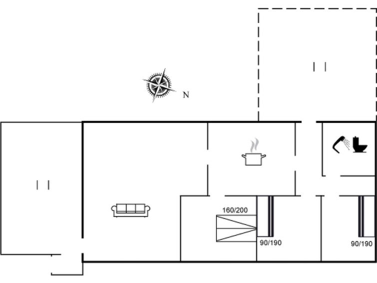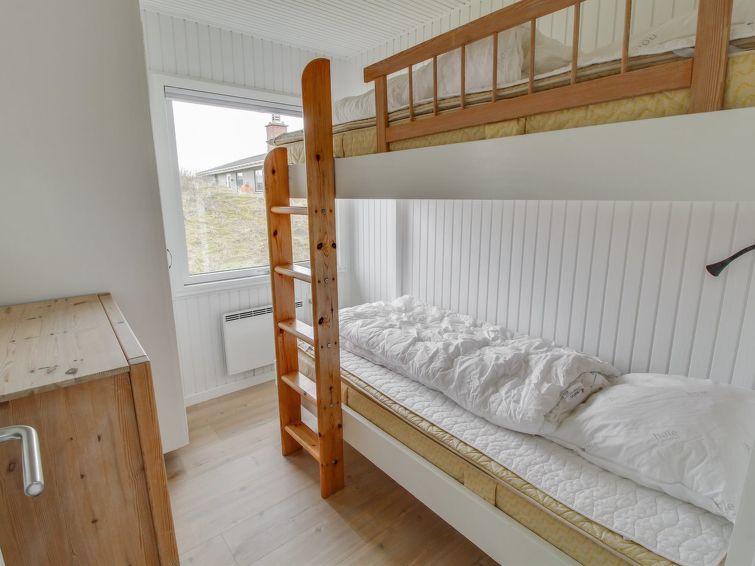 "Terhi" - 200m from the sea in Western Jutland", 3 rom hus 65 m2. Passer for 6 voksne. Stue med, TV, radio, CD-spiller og DVD. 1 rom med, 1 x 2 køysenger. 1 rom med, 1 x 2 køysenger. 1 rom med, 1 dobbeltseng. Kjøkken (4 kokeplater, stekeovn, mikrobølgeovn, frys). Dusj/WC. Fasiliteter: høy barnestol. Internett (trådløs LAN [WLAN]). Vennligst merk: røykfri bolig.