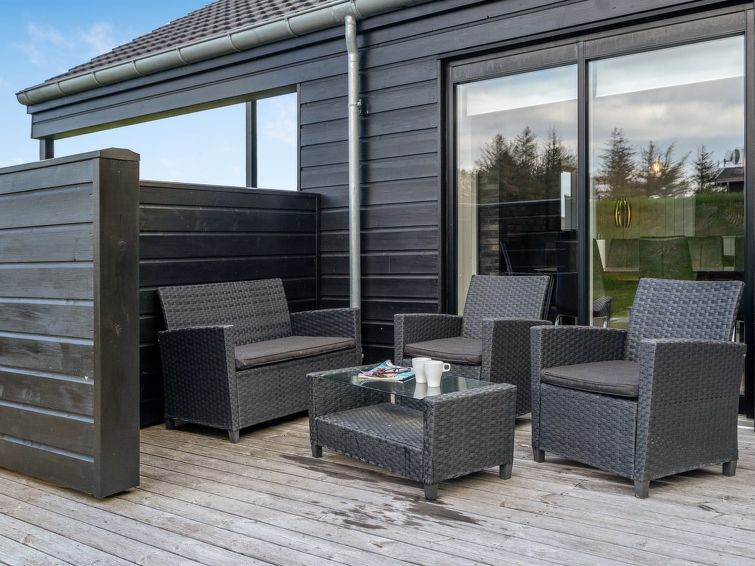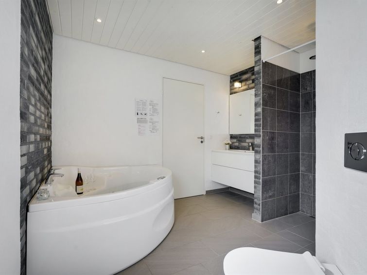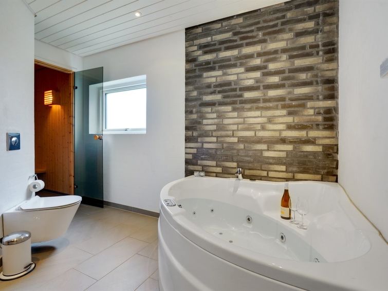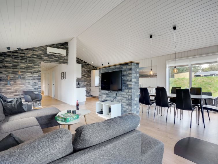 "Øthbiorn" - 1.1km from the sea in NW Jutland", 4 rom hus 135 m2. Passer for 8 voksne + 1 barn. Stue med, TV. 1 rom med, 1 dobbeltseng. 1 rom med, 1 dobbeltseng. 1 rom med 2 senger. 1 rom med 2 senger. Kjøkken (stekeovn, oppvaskmaskin, 4 induksjonskomfyr, mikrobølgeovn, frys). 2 dusjer/WC, boblebad. Terrasse 10 m2, dekt. Fasiliteter: høy barnestol barneseng (ekstra). Internett (trådløs LAN [WLAN]). Vennligst merk: røykfri bolig.