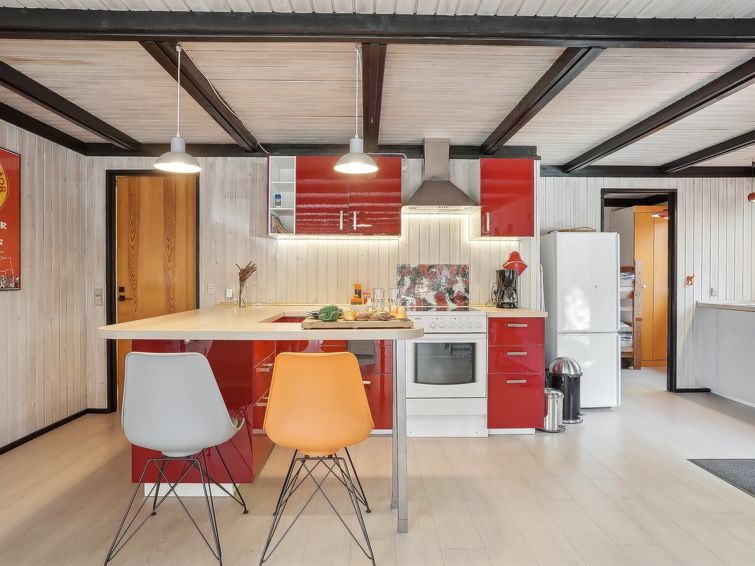 "Therbern" - 1.7km from the sea in NW Jutland", 3 rom hus 79 m2. Passer for 4 voksne + 3 barn. Stue med, TV. 1 rom med, 1 dobbeltseng. 1 rom med 2 senger. 1 rom med, 1 x 2 køysenger. Kjøkken (stekeovn, oppvaskmaskin, 4 keramiske kokeplater, frys). Dusj/WC. Fasiliteter: høy barnestol barneseng (ekstra). Vennligst merk: røykfri bolig.