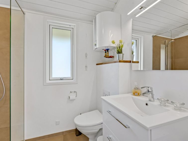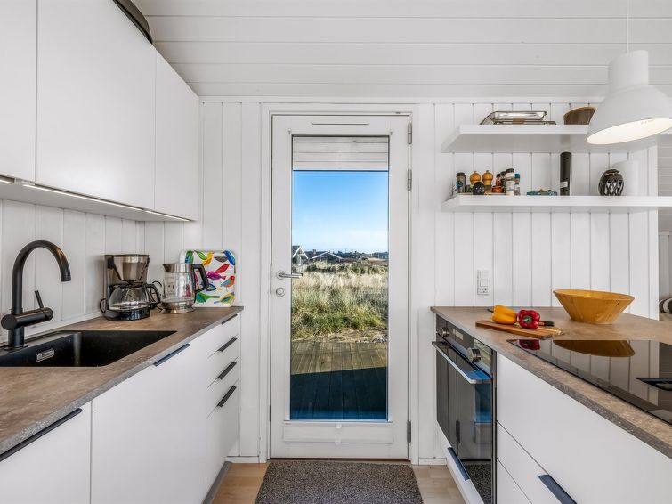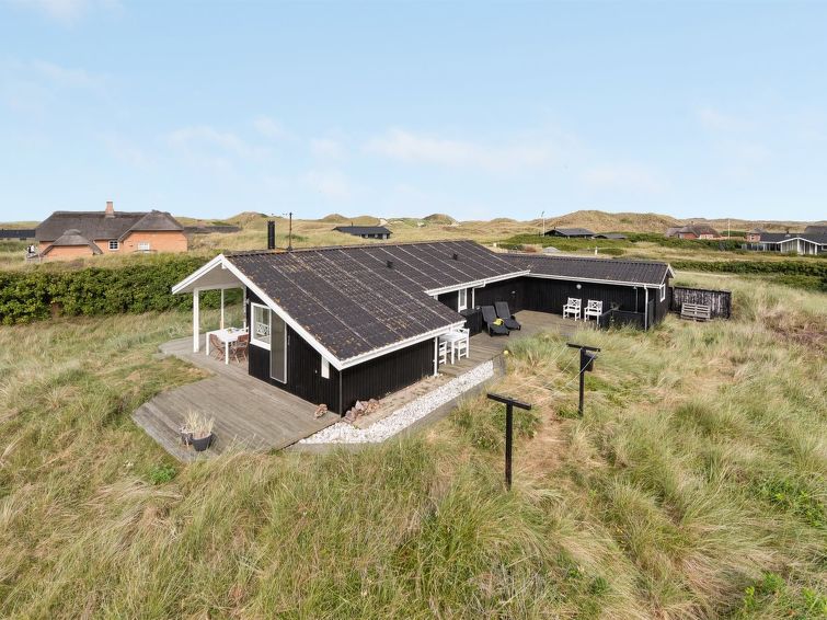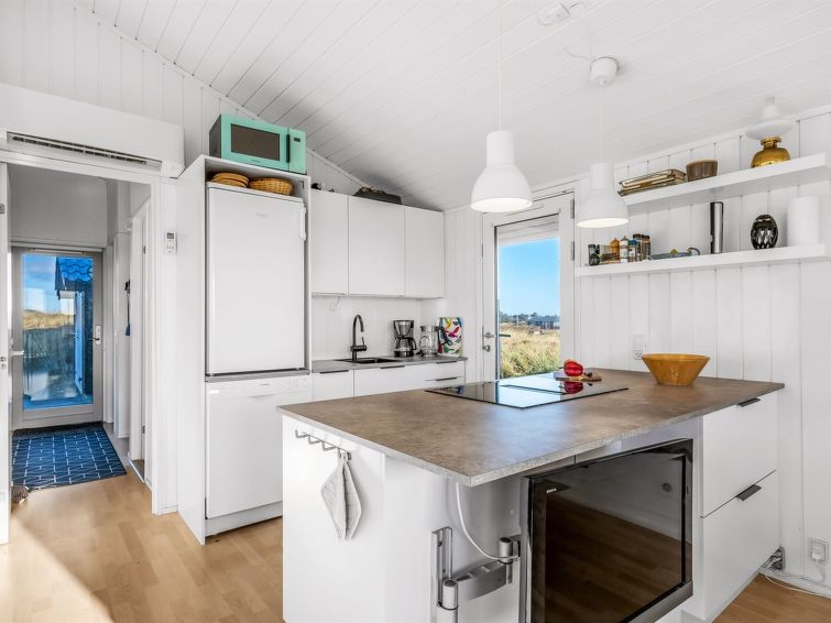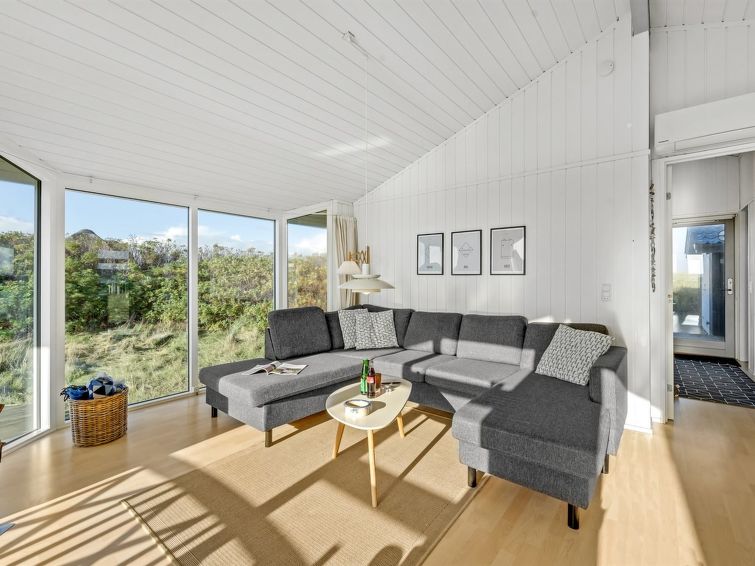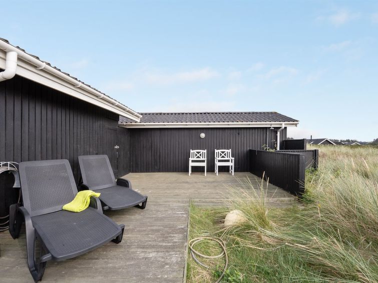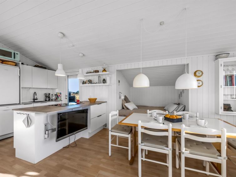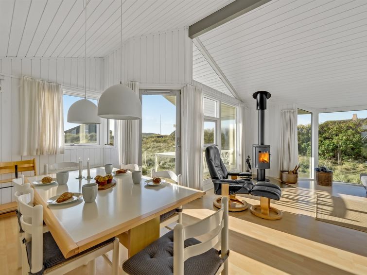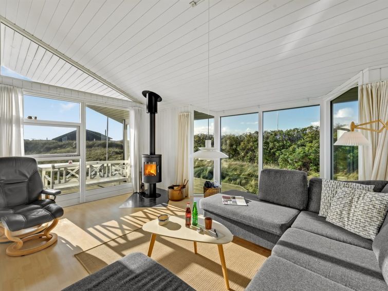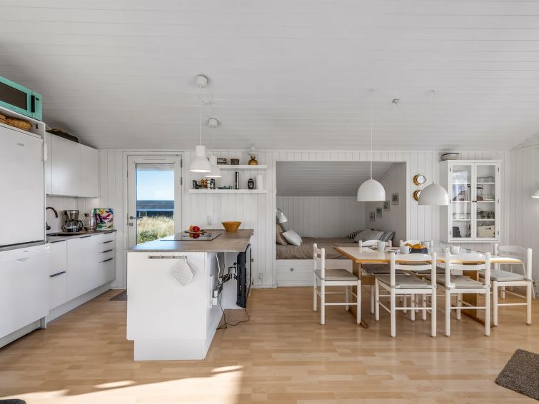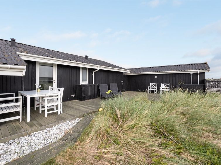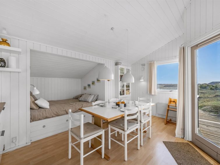 "Thorgny" - from the sea in Western Jutland", 3 rom hus 70 m2. Passer for 5 voksne. Stue med, TV og radio. 1 rom med, 1 dobbeltseng. 1 rom med, 1 dobbeltseng. 1 rom med 1 seng. Kjøkken (4 kokeplater, stekeovn, oppvaskmaskin, mikrobølgeovn, frys). Dusj/WC. Terrasse 8 m2, dekt. Fasiliteter: høy barnestol. Internett (trådløs LAN [WLAN]). Vennligst merk: røykfri bolig. Max kjæledyr / hund tillatt 1 kjæledyr / hund tillatt.