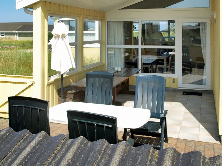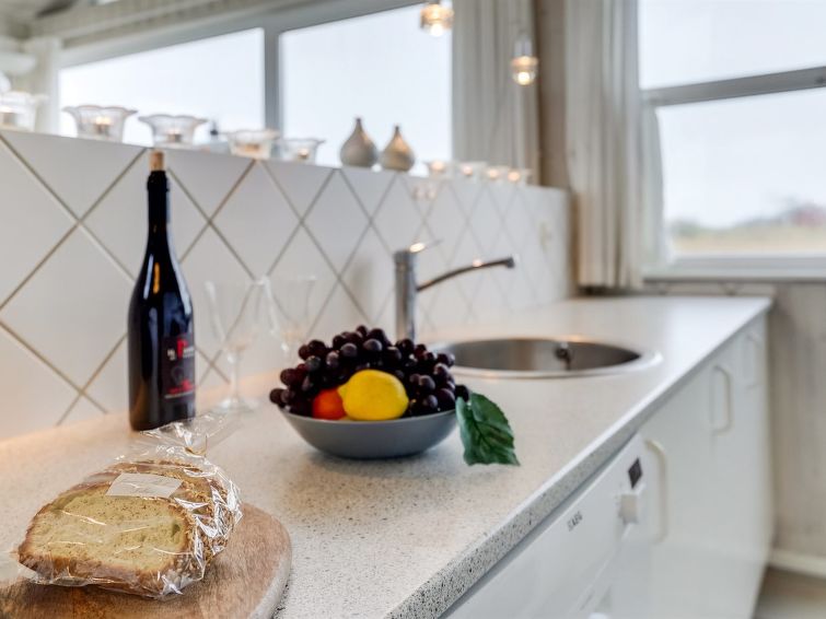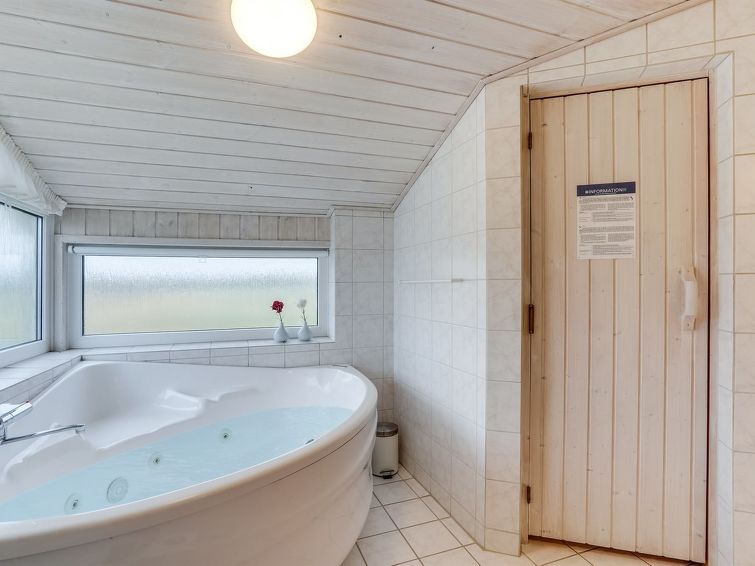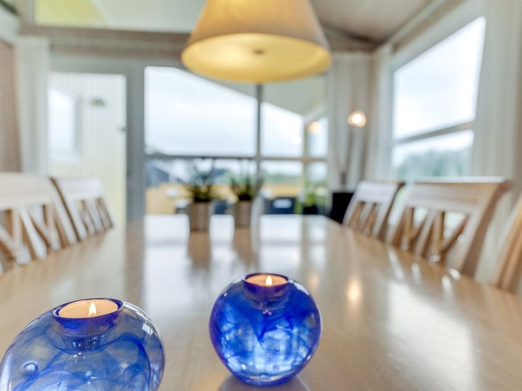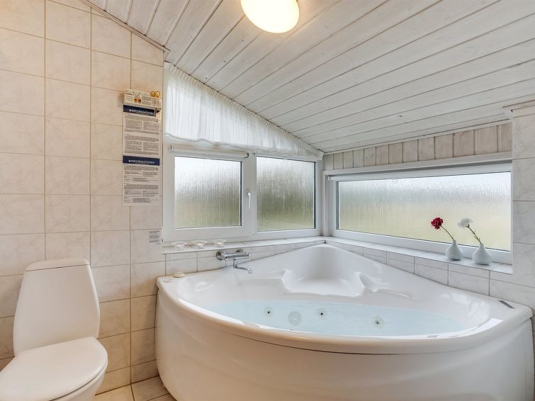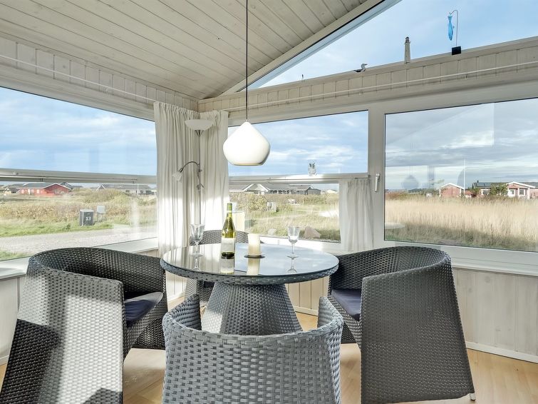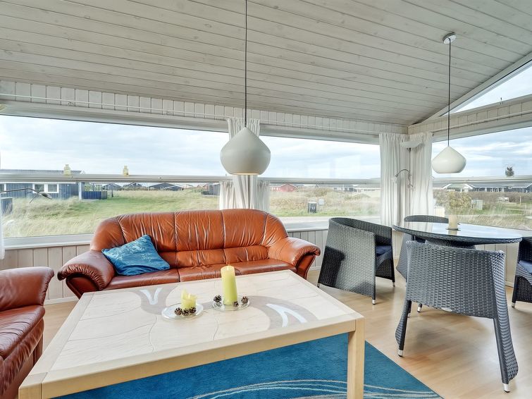 "Thorir" - 300m from the sea in NW Jutland", 4 rom hus 108 m2. Passer for 8 voksne + 1 barn. Stue med, TV, CD-spiller, stereoanlegg og DVD. 1 rom med, 1 dobbeltseng. 1 rom med, 1 x 2 køysenger. 1 rom med, 1 dobbeltseng. 1 rom med 1 seng. Kjøkken (stekeovn, oppvaskmaskin, 4 keramiske kokeplater, mikrobølgeovn, frys). Dusj/WC, boblebad. Terrasse 22 m2, dekt. Fasiliteter: høy barnestol barneseng (ekstra). Internett (trådløs LAN [WLAN]). Max kjæledyr/små hunder tillatt 3 kjæledyr/små hunder tillatt.