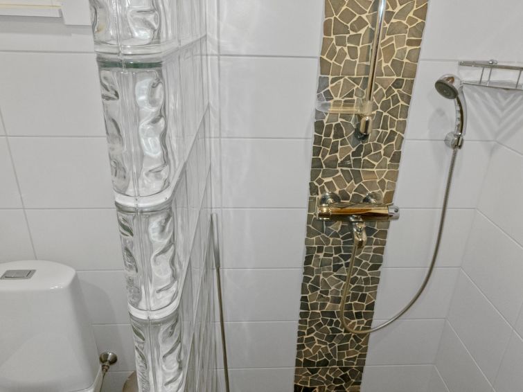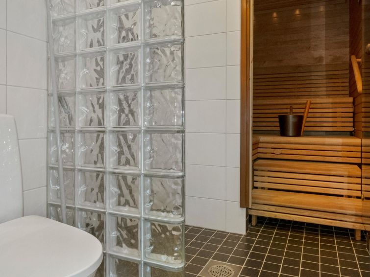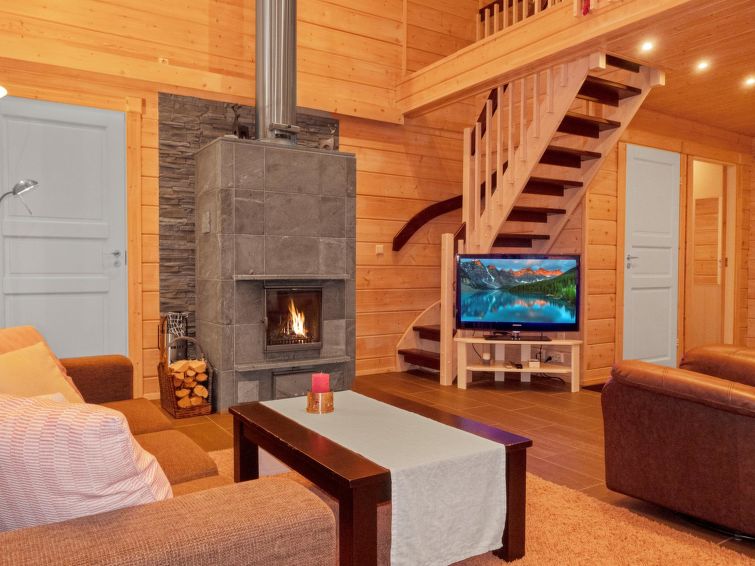 Laminated log cabin, built in 2010. On the ground floor, living room / kitchen, bedroom with double bed, another bedroom with two separate beds, sauna, washroom/WC, utility room / dressing room, separate WC and covered terrace.
