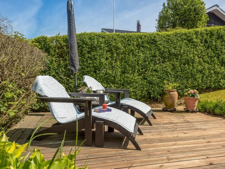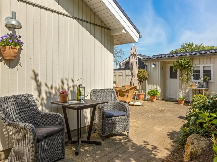 "Tini" - 50m to the inlet in SE Jutland", 2 rom hus 70 m2. Passer for 4 voksne. Stue med, 1 dobbel sovesoffa, TV og radio. Åpen galleri, 1 rom med, 1 dobbeltseng og 2 sovemuligheter. Kjøkken (stekeovn, 4 keramiske kokeplater, mikrobølgeovn, frys). Dusj/WC. Terrasse 12 m2, dekt. Av viken. Fasiliteter: Internett (trådløs LAN [WLAN]). Vennligst merk: røykfri bolig.