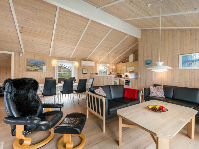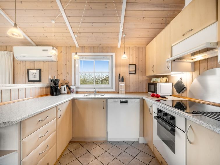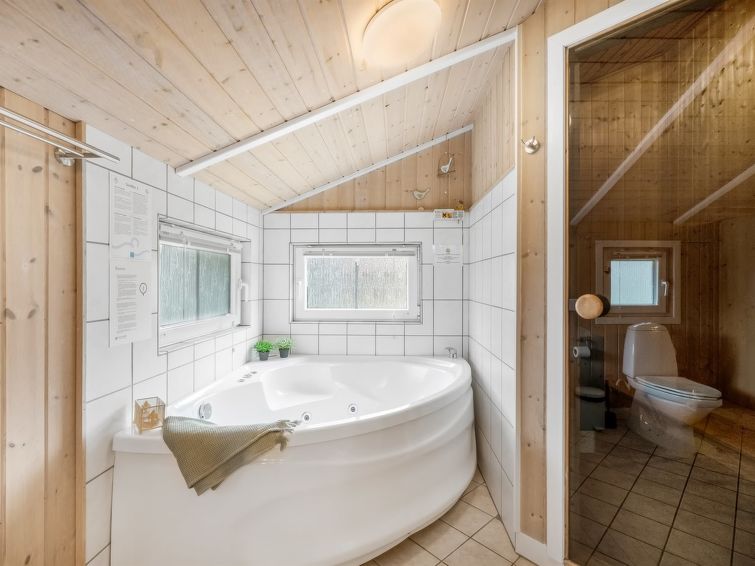 "Tinka" - 1.2km to the inlet in Western Jutland", 3 rom hus 96 m2. Passer for 6 voksne + 1 barn. Stue med, TV, CD-spiller, stereoanlegg og DVD. 1 rom med 2 senger. 1 rom med, 1 dobbeltseng. 1 rom med, 1 dobbeltseng. 1 rom med, 1 dobbeltseng. Kjøkken (stekeovn, oppvaskmaskin, 4 keramiske kokeplater, mikrobølgeovn, frys). Dusj/WC, boblebad. Terrasse 6 m2, dekt. Fasiliteter: høy barnestol barneseng (ekstra). Internett (trådløs LAN [WLAN]). Vennligst merk: røykfri bolig.