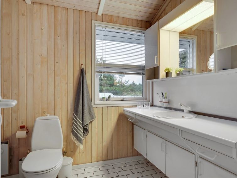 "Tino" - 900m from the sea in NW Jutland", 3 rom hus 97 m2. Passer for 6 voksne + 1 barn. Stue med, TV. 1 rom med, 1 dobbeltseng. 1 rom med, 1 dobbeltseng. 1 rom med, 1 x 2 køysenger. Kjøkken (stekeovn, oppvaskmaskin, 4 keramiske kokeplater, mikrobølgeovn, frys). 2 dusjer/WC. Terrasse 20 m2, dekt. Fasiliteter: høy barnestol barneseng (ekstra). Internett (trådløs LAN [WLAN]). Vennligst merk: røykfri bolig. Max kjæledyr / hund tillatt 1 kjæledyr / hund tillatt.